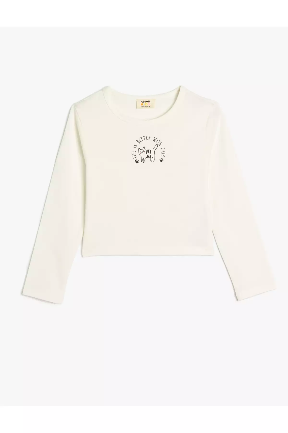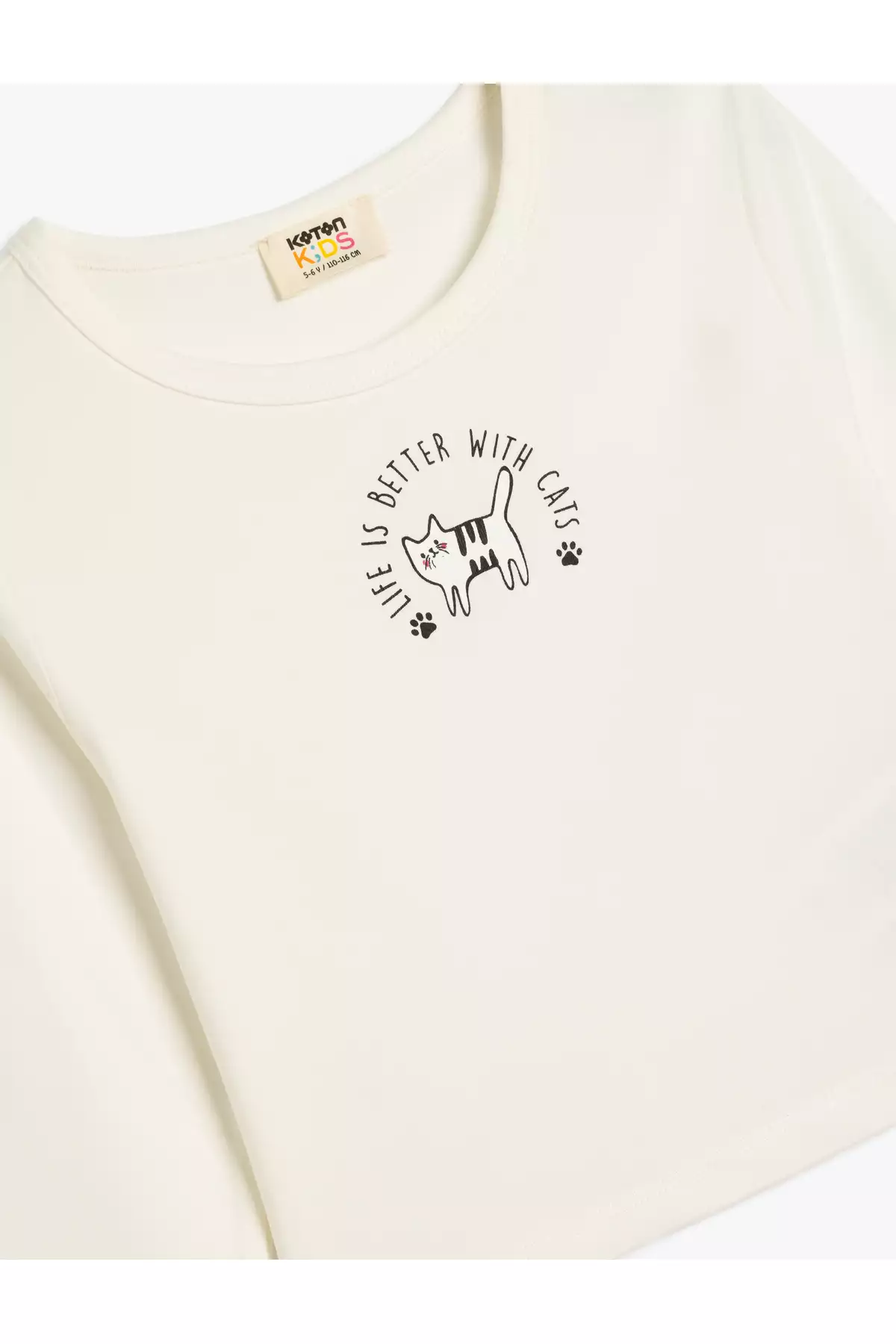 تی-shirt کلاهدار بلند با طرح گربه و گردن بیدار از جنس کتان برند Koton