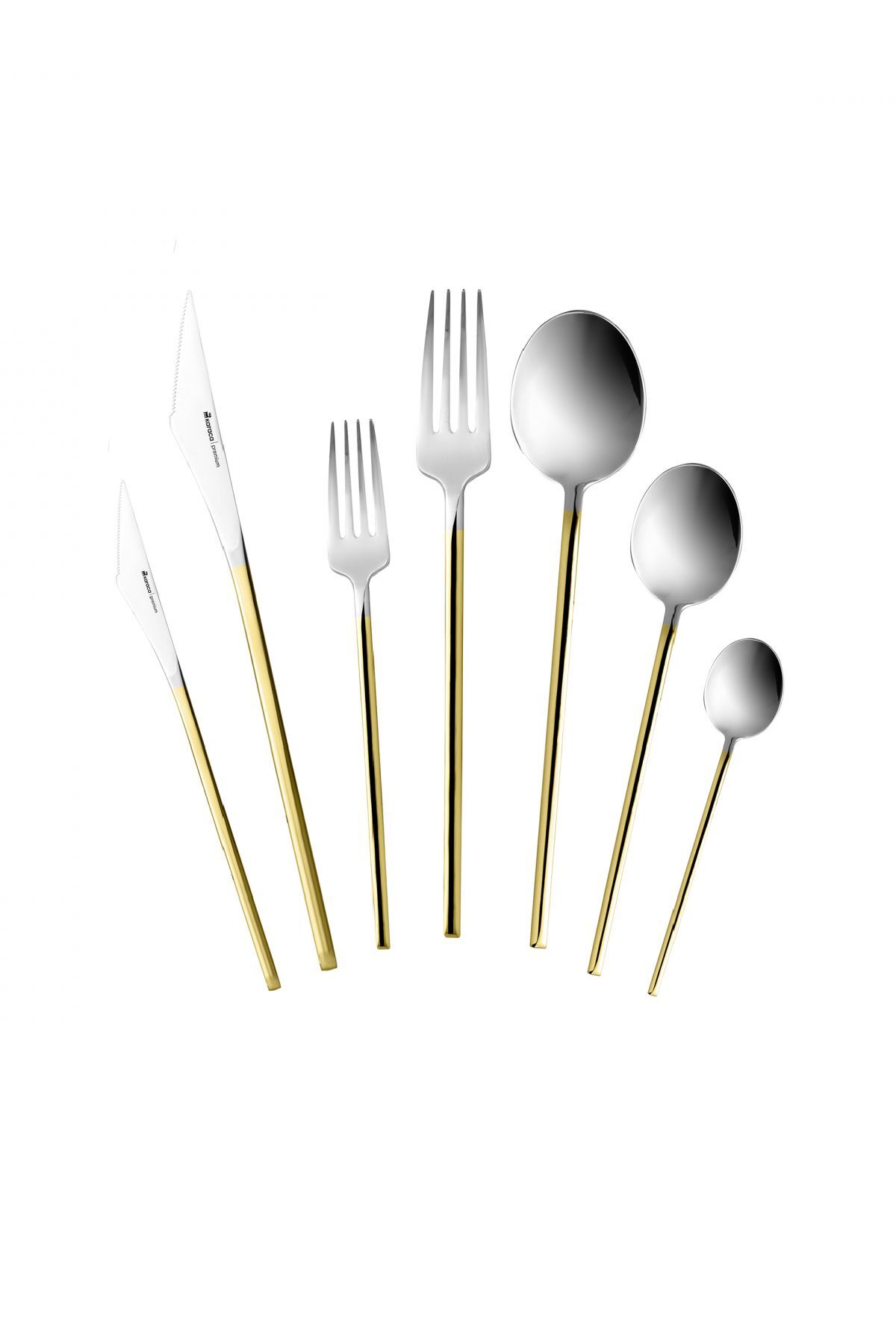 سرویس ۸۴ قطعهی Gold شامل اقلام متنوعی است که نه تنها قاشق، چنگال و چاقو، بلکه ابزارهای دیگری که برای سرو غذای کامل نیاز دارید را در بر میگیرد. این امر از نظر کاربردی بودن این مجموعه را بسیار غنی کرده و طیف وسیعی از نیازهای مربوط به میز غذاخوری را پوشش میدهد. ظاهر زیبا و درخشان طلایی قطعات نیز جذابیت بصری سرویس را افزایش داده است.