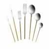 سرویس ۸۴ قطعهی Gold شامل اقلام متنوعی است که نه تنها قاشق، چنگال و چاقو، بلکه ابزارهای دیگری که برای سرو غذای کامل نیاز دارید را در بر میگیرد. این امر از نظر کاربردی بودن این مجموعه را بسیار غنی کرده و طیف وسیعی از نیازهای مربوط به میز غذاخوری را پوشش میدهد. ظاهر زیبا و درخشان طلایی قطعات نیز جذابیت بصری سرویس را افزایش داده است.