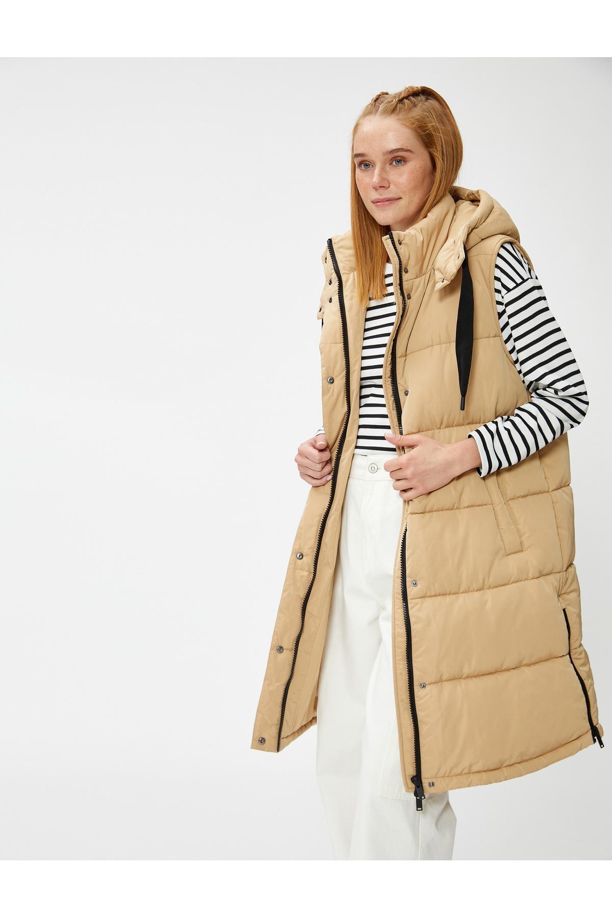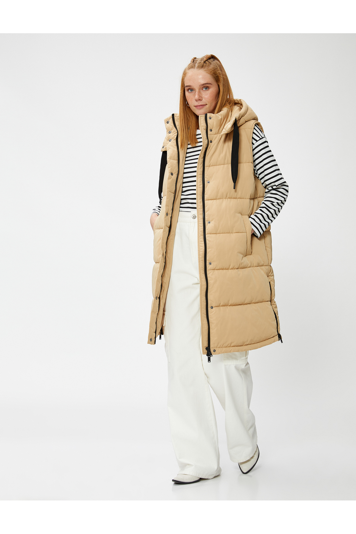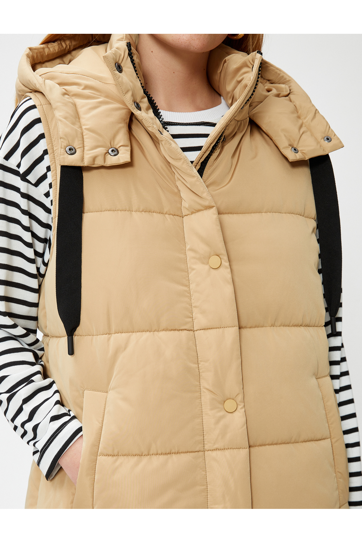 جلیقه جیب دار کلاهدار پفدار بلند با کیفیت عالی و رنگ زیبا و طرح شیک و قیمت باورنکردنی ساخت برند Koton را از فروشگاه اینترنتی فیزا خریداری کنید.