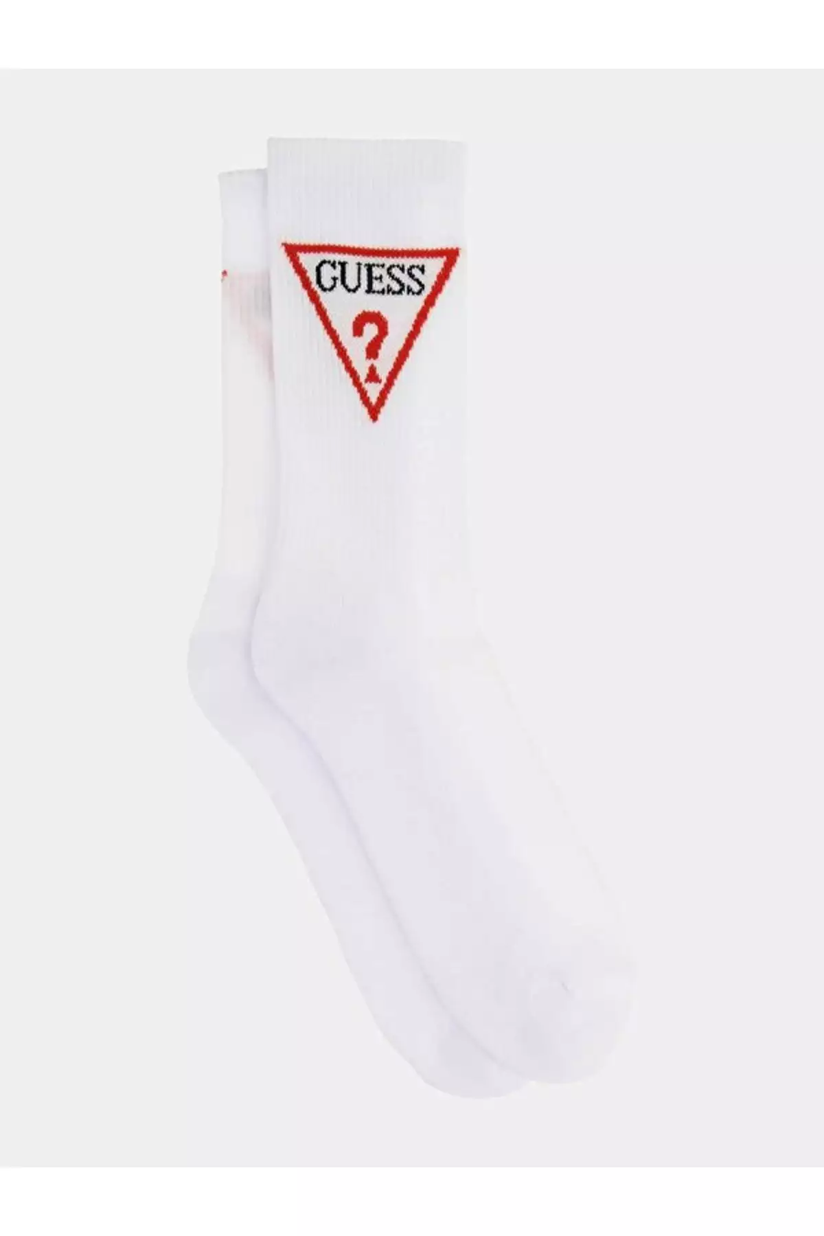 جوراب سفید با لوگوی مثلثی قرمز از برند Guess، انتخابی مناسب برای آقایانی است که به دنبال استایل خاص و شیک هستند.