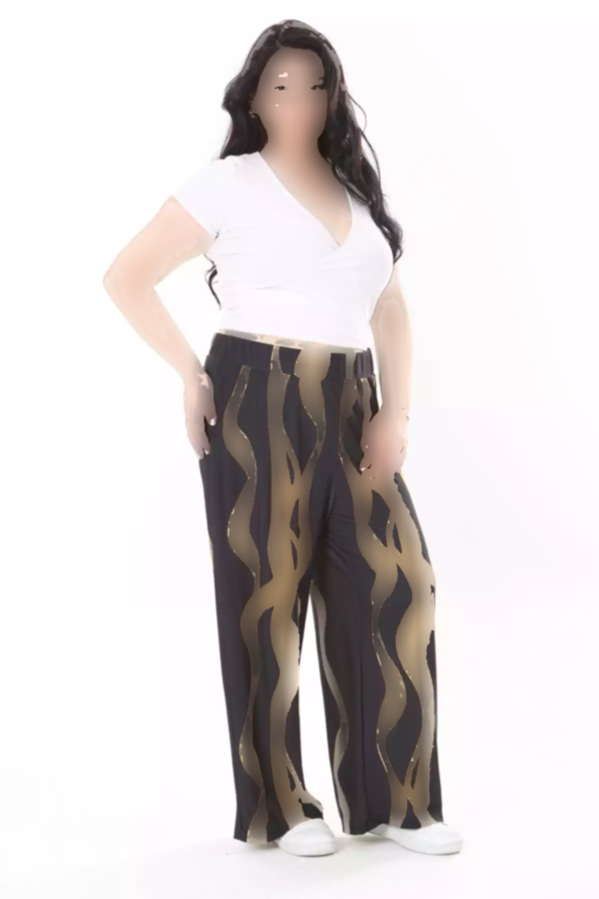 جیب دار کمر کشی لایکرا طرح‎دار سایز بزرگ شلوار مشکی زنانه برند Şans کد 1758336064