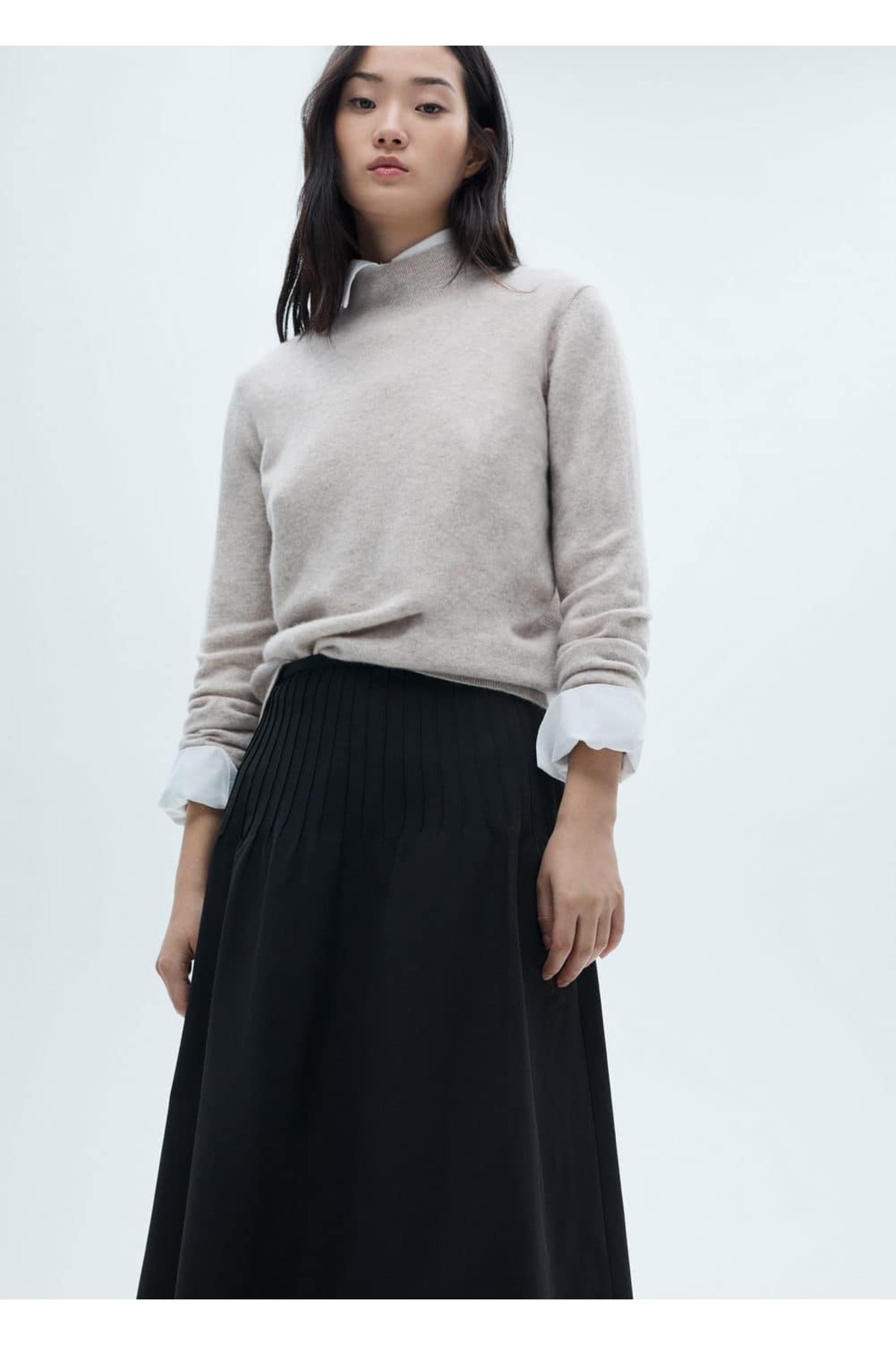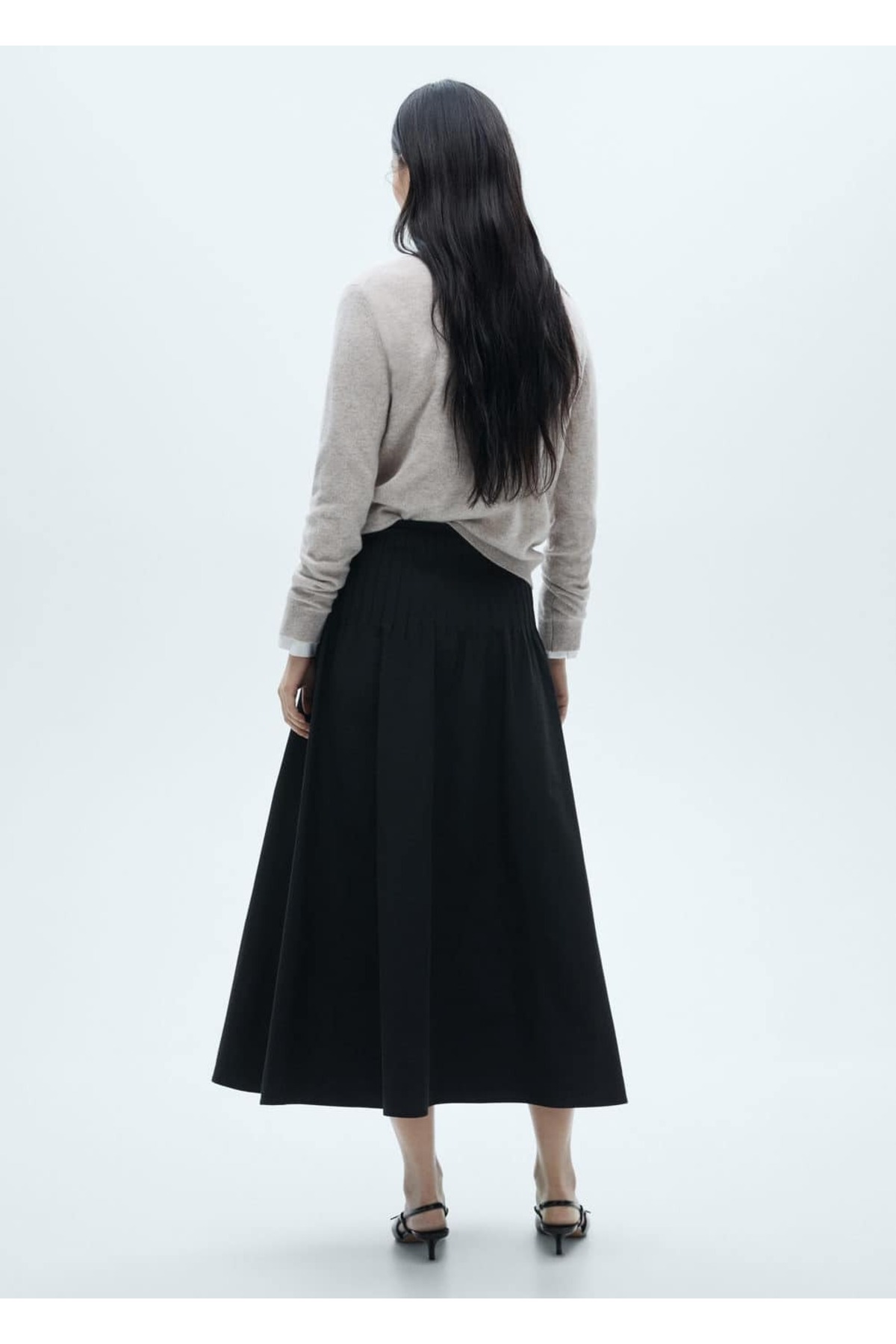 دامن اَوَیزه MANGO به دلیل طراحی شیک و کاربرپسند، گزینهای عالی برای مهمانیها و مراسمهای خاص به شمار میرود.