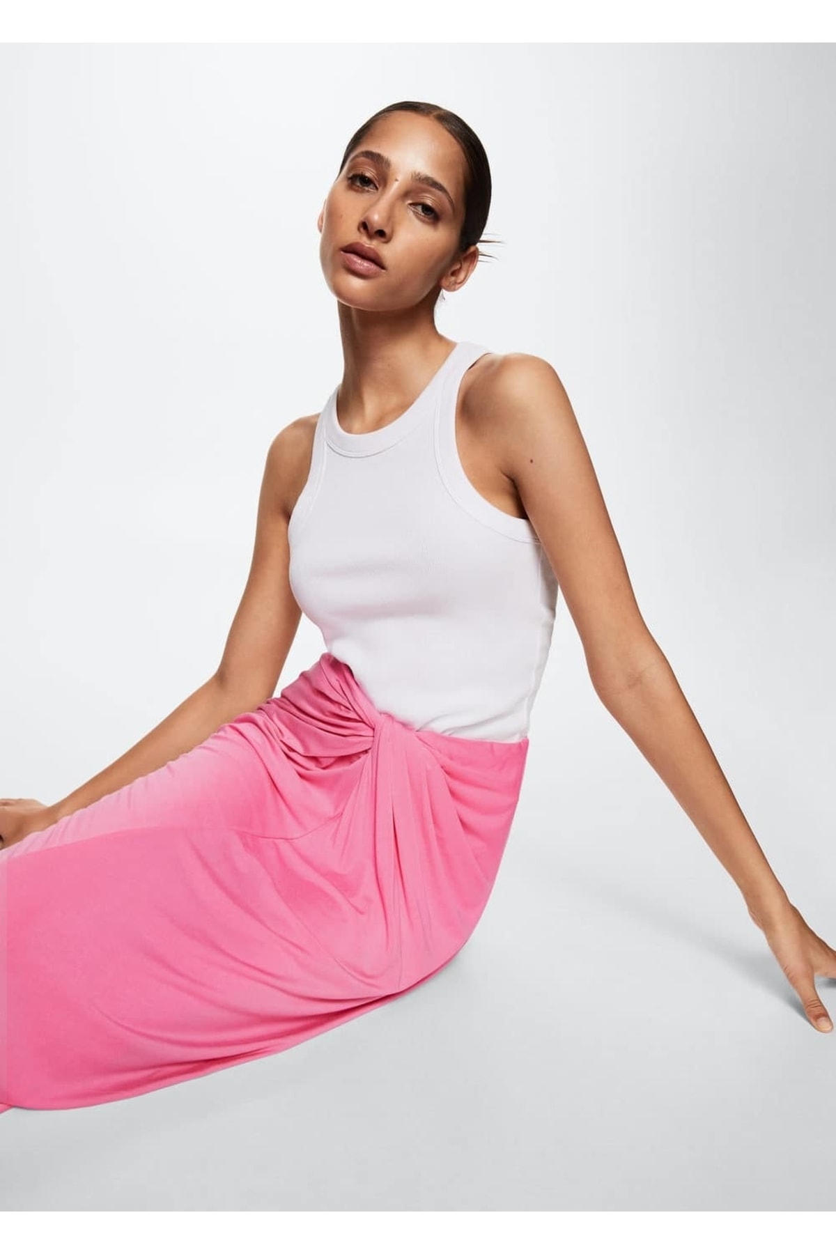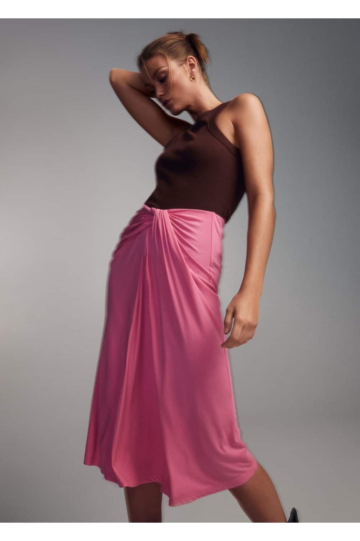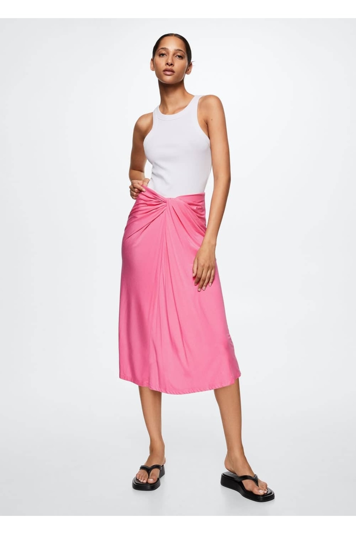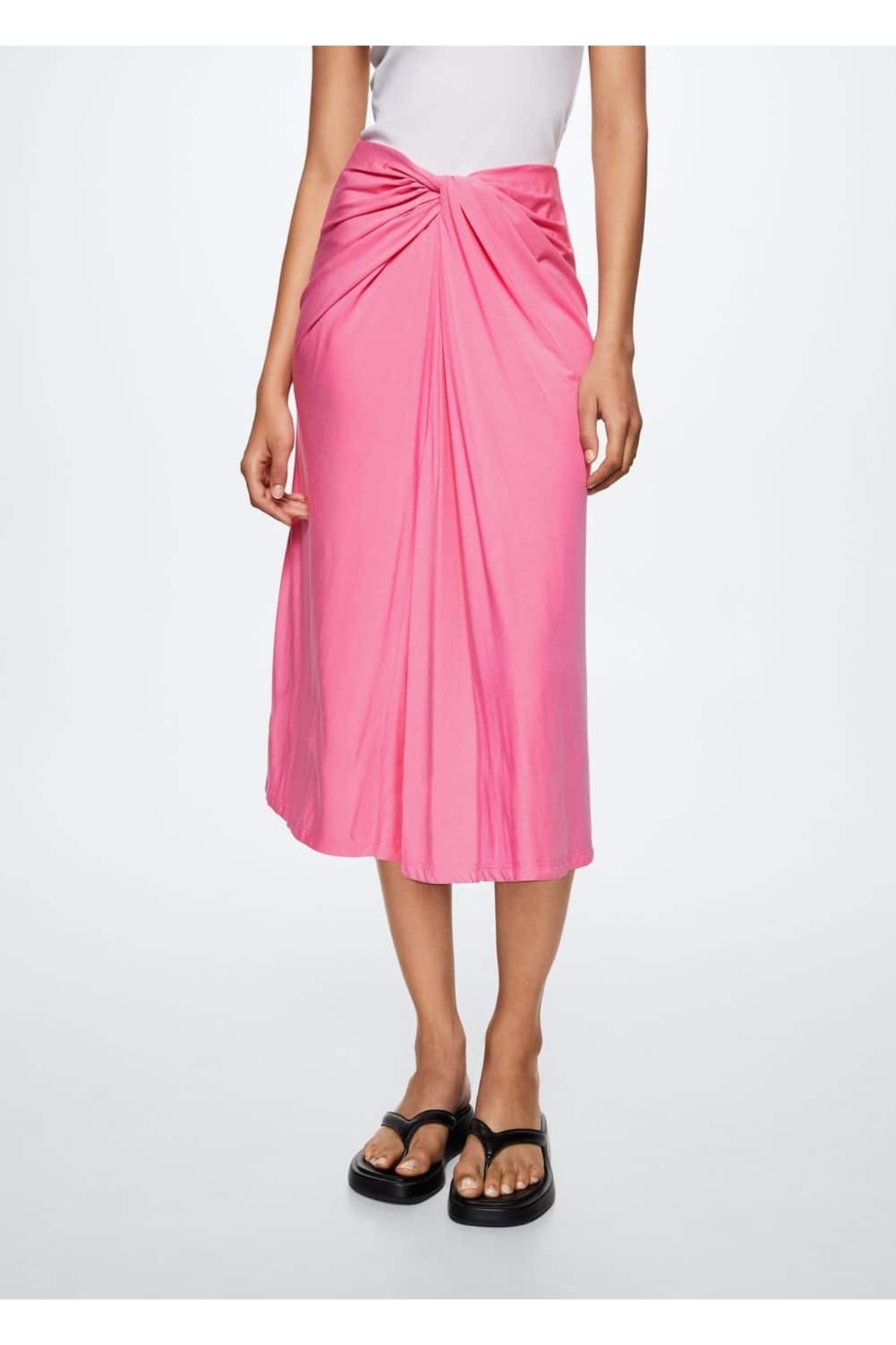 این دامن دارای جزئیات گرهای زیبایی است که نه تنها جذابیت ظاهری آن را افزایش میدهد، بلکه به آن حالتی مدرن و جوان پسند میبخشد. طراحی گرهای در قسمت کمر و یا در نقاط استراتژیک دیگر، این دامن را خاص و متفاوت میکند و به راحتی قابلیت ست شدن با سایر پوشاک و اکسسوریها را داراست. این جزئیات باعث میشود که دامن از سادگی خارج شده و به یک لباس خاص برای مناسبتهای خاص تبدیل شود.