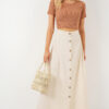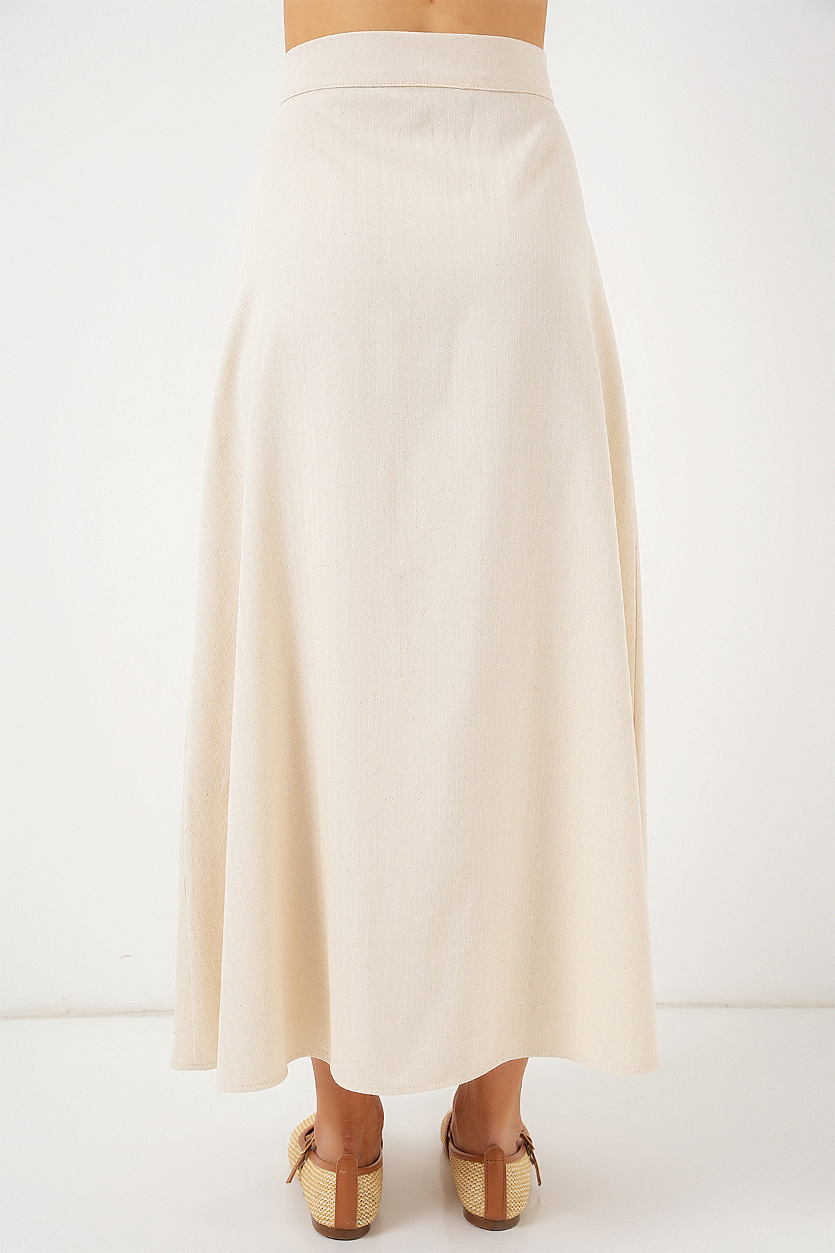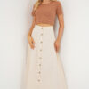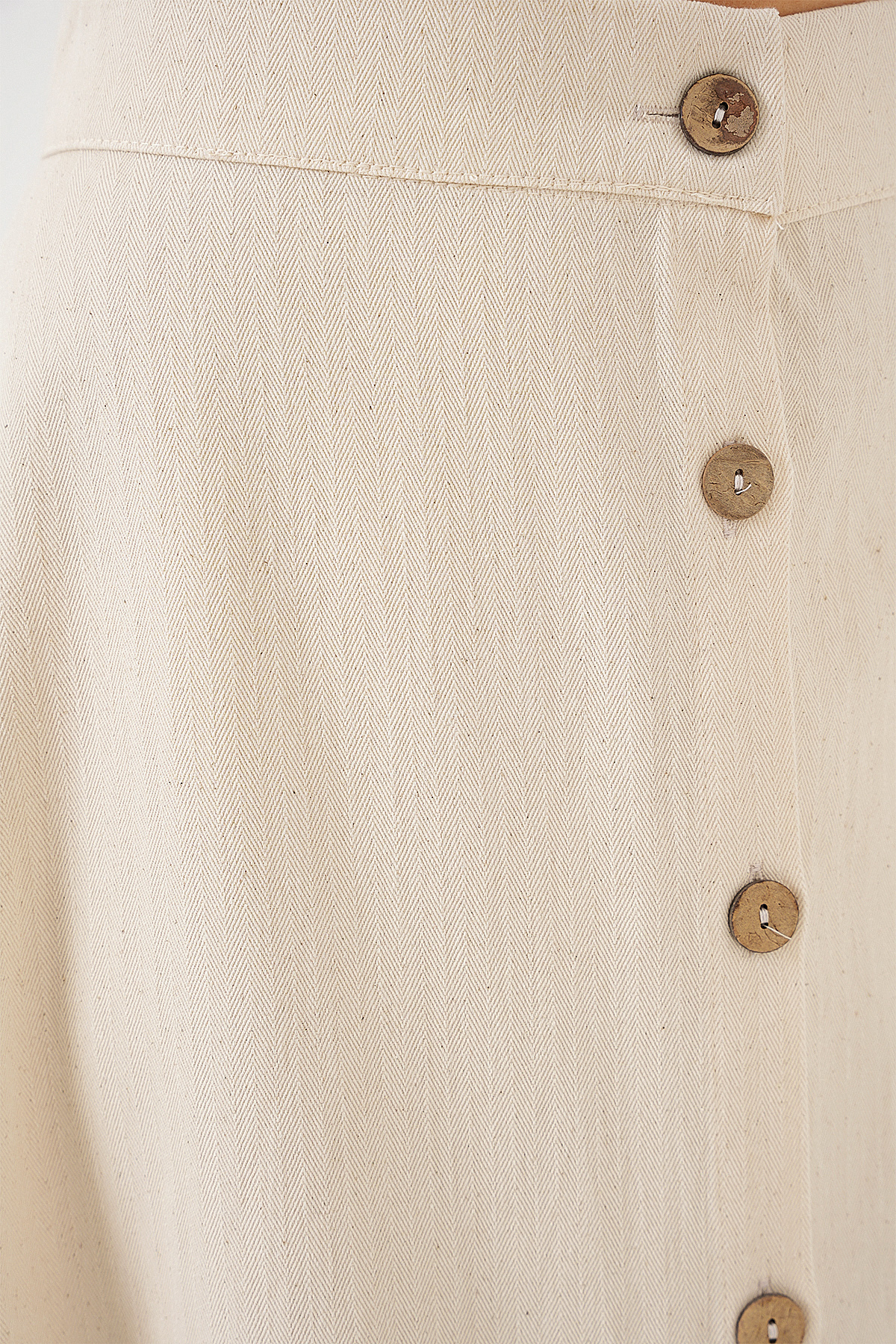 دامن نخی دکمهدار زنانه مدل ۸۰۴۶ در رنگ زیبا و ملایم کرم، یک انتخاب مناسب برای خانمهاست که به دنبال ترکیبی از راحتی و زیبایی در پوشش خود هستند. این دامن با طراحی خاص و منحصر به فرد خود، میتواند به راحتی در هر موقعیتی مورد استفاده قرار گیرد، از کژوالهای روزمره گرفته تا موقعیتهای نیمهرسمی.