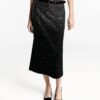 دامن .– جسکمر میانی، طرح ساده، طرح میدی، جزئیات سنگی، کمر کشدار، بدون بسته شدن، مجموعه مهمانی و مراسم، مدل قد 1.77 سانتی متر و سایز S/36، مدل 1.81 سانتی متر قد و سایز S/36، گزینه های انتخابی محصول ساخته شده از پارچه های با کیفیت برای ایجاد یک کمد لباس زنانه و معاصر برای مناسبت های خاص.87% پلی استر، 7% ویسکوز، 4% الاستین، 2% لیونل، پولک: 100% شیشه.طول درز پهلو 82.5 سانتی متر، طول دامن 83.0 سانتی متر.
