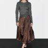 دامن با ترکیب 80% پلیاستر و 20% الاستین، حس راحتی و آزادی عمل را برای شما ایجاد میکند. رنگ قهوهای ملایم آن به راحتی با دیگر لباسها قابل تطبیق است.