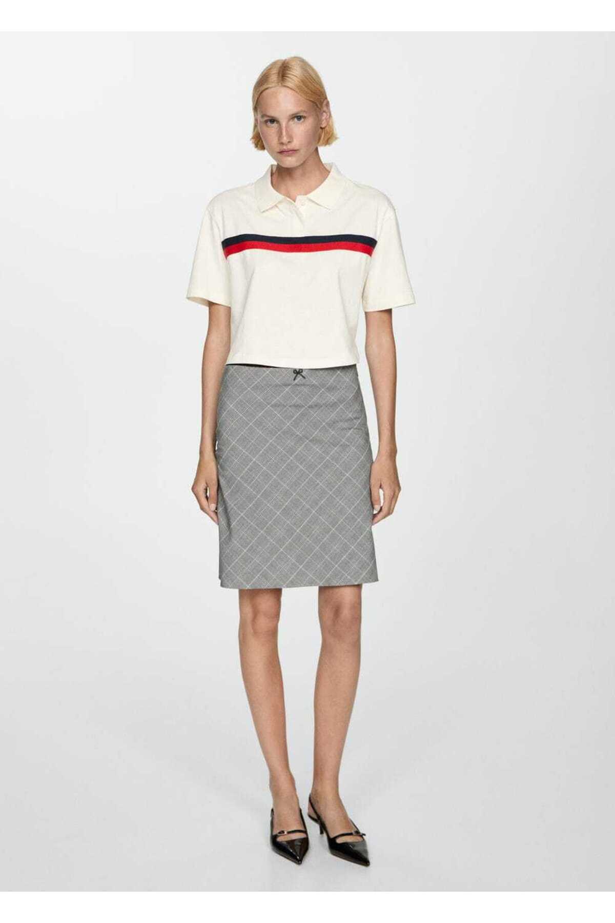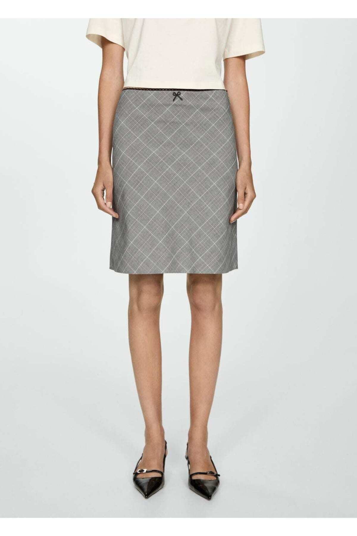 دامن چهارخانه با جزئیات تزئینی گرهدار برند MANGO