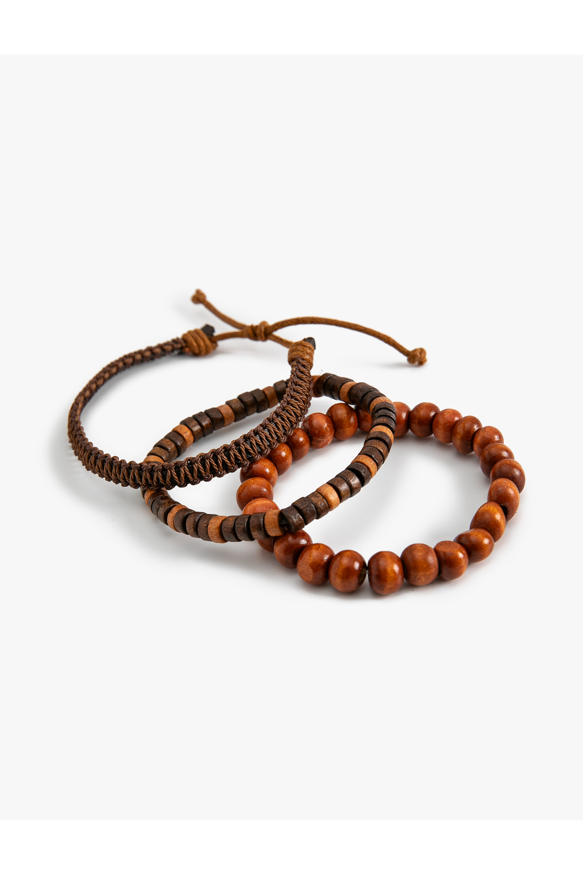 **توضیحات محصول: ست دستبند 3 عددی با مرواریدهای چوبی – کد 1742066473**