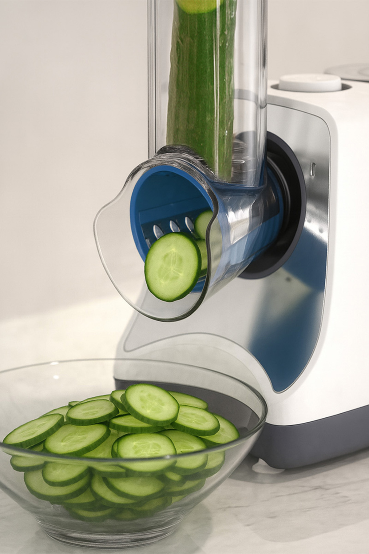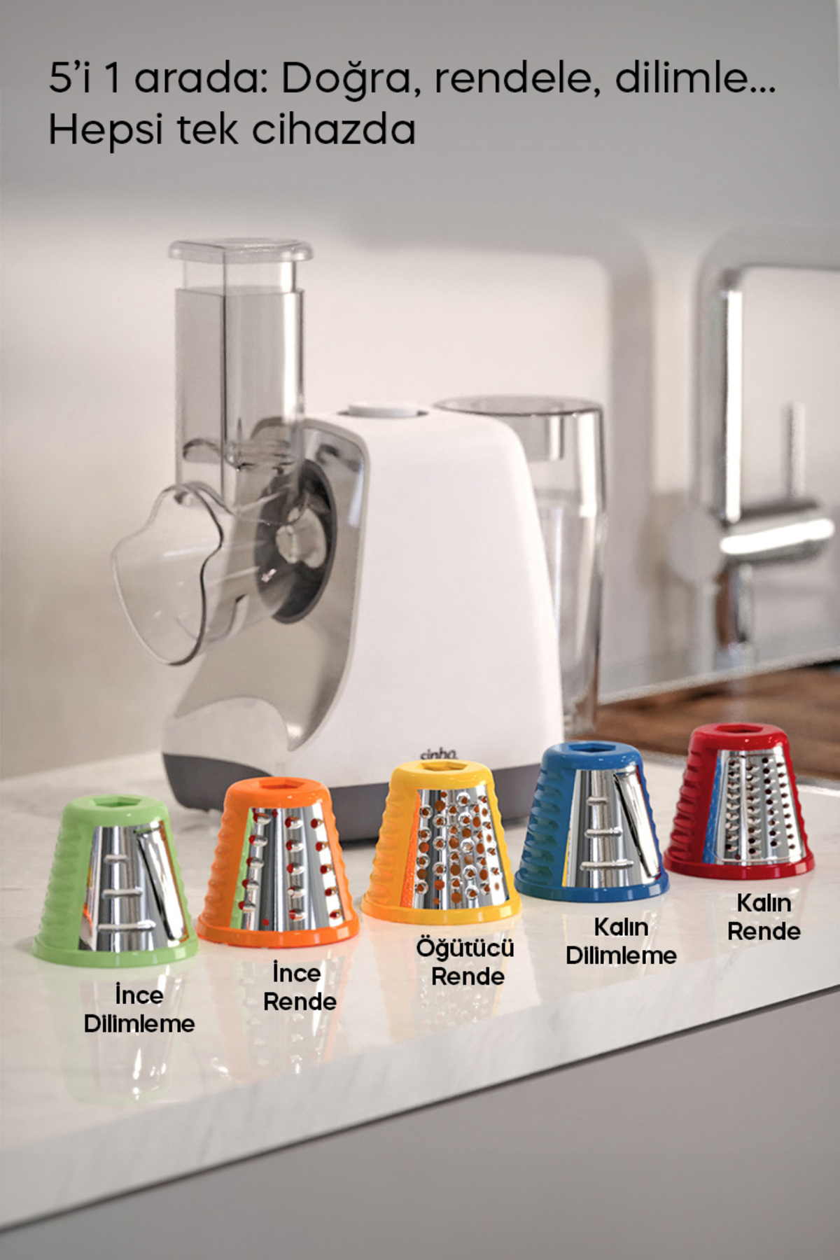 این دستگاه علاوه بر عملکردهای اصلی خود، دارای 5 نوع تیغه مختلف است که هر کدام برای انجام وظایف متفاوت طراحی شدهاند. این تنوع در تیغهها به شما این امکان را میدهد که با توجه به نیاز خود، از بهترین گزینه استفاده کنید. چه بخواهید مواد را ریز خرد کنید یا به صورت خلالی برش دهید، هر چیزی ممکن است.