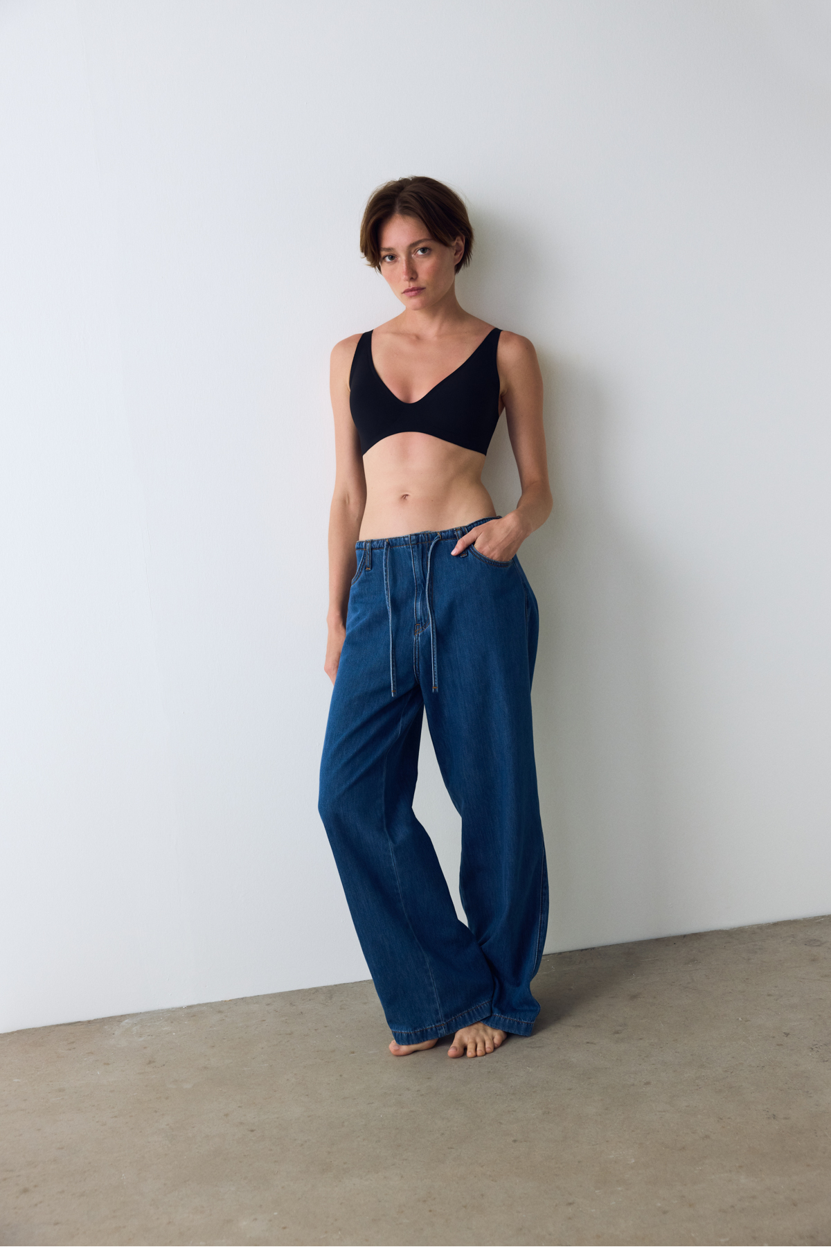 شلوار دنیم تیره، راسته و با کمر بلند به دلیل جنس باکیفیت و مقاوم خود، تنوع استفاده بالایی دارد و به راحتی میتوان آن را با انواع مانتوها، تیشرتها و حتی کتهای سبک ترکیب کرد. از سوی دیگر، این شلوار برای فصلهای مختلف سال مناسب بوده و میتوان در بهار و پاییز با یک ژاکت یا سویشرت ترکیب کرد و در تابستان با یک تیشرت سبک آن را ست کرد.