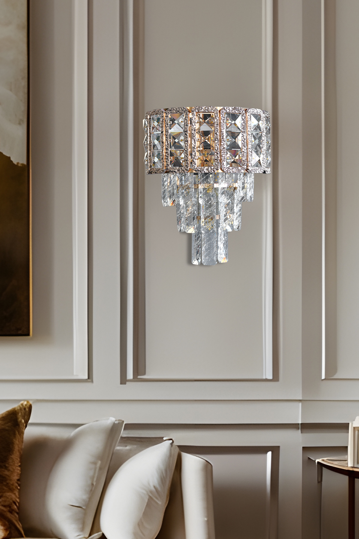 دیوار سالن لامپ کریستال نگین دار 400 طلایی با کیفیت عالی و رنگ زیبا و طرح شیک و قیمت باورنکردنی ساخت برند Apliqa را از فروشگاه اینترنتی فیزا خریداری کنید.