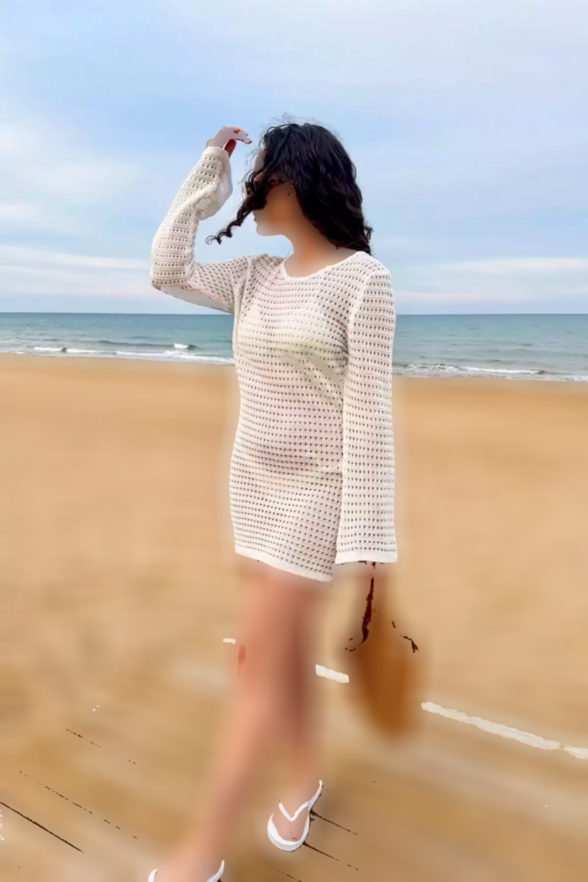 **توضیح محصول: لباس ساحلی مینی با آستین اسپانیایی – رنگ سفید**