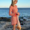 **توضیحات محصول: پیراهن مینی بافتنی خطی زنانه اسپانیایی آستین تور نارنجی-وانیلی**