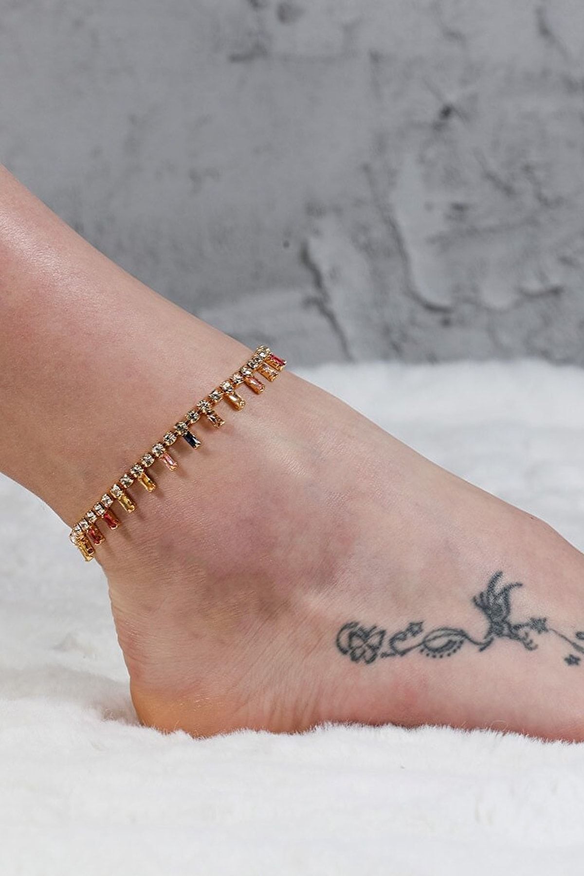 سنگهای زینتی رنگی به کار رفته در این پابند، به آن جلوهای شیک و جذاب میدهند. این سنگها با رنگهای مختلف و درخشش خود میتوانند به راحتی با سایر زیورآلات و لباسهای شما هماهنگ شوند و به زیبایی استایل شما افزوده و آن را تکمیل کنند. با انتخاب این پابند، میتوانید به راحتی در بین مهمانیها و دورهمیها درخشش خاصی داشته باشید.