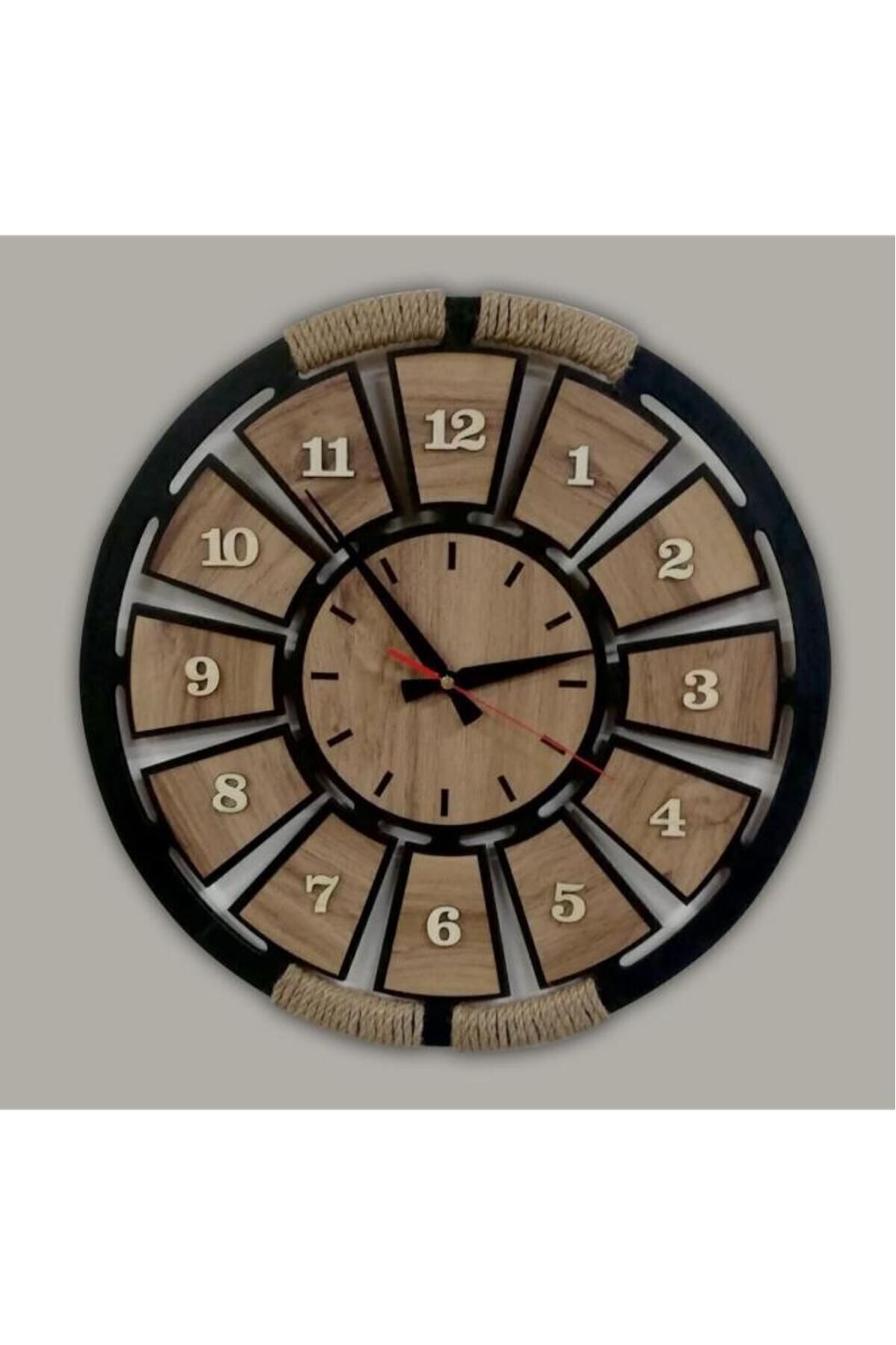 تاج ساعت از چوب با کیفیت ساخته شده و مماس بر روی آن ساعت با اعداد بزرگ و قابل مشاهده طراحی شده است. این طراحی نه تنها زیبایی خاصی به محصول میبخشد بلکه در خواندن زمان نیز کمک شایانی میکند. وجود طناب چوبی در طراحی ساعت، حس طبیعی و آرامشبخشی به فضای اطراف میدهد و به عنوان یک نقطه کانونی در دکوراسیون منزل عمل میکند.