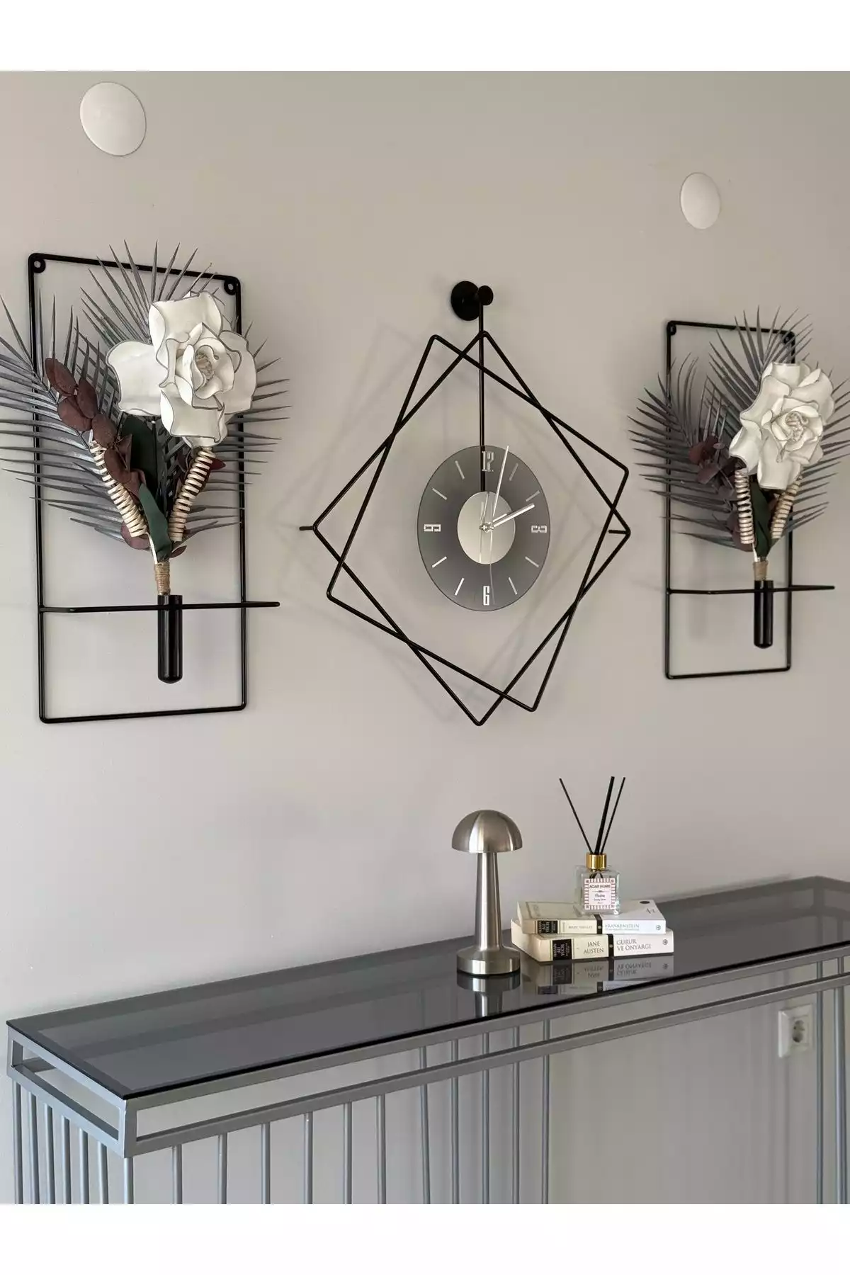 بدنه این ساعت از فلز با کیفیت بالا ساخته شده است که باعث دوام و مقاومت آن در برابر آسیبها و ضربات میشود. رنگ مشکی آن به راحتی با سایر رنگها و دکوراسیونها هماهنگ میشود و میتواند جلوهای خاص به محیط ببخشد. این ساعت نه تنها زمان را نمایش میدهد بلکه به عنوان یک اثر هنری و زیبا میتواند تزیینی فوقالعاده برای دیوارهای شما باشد.