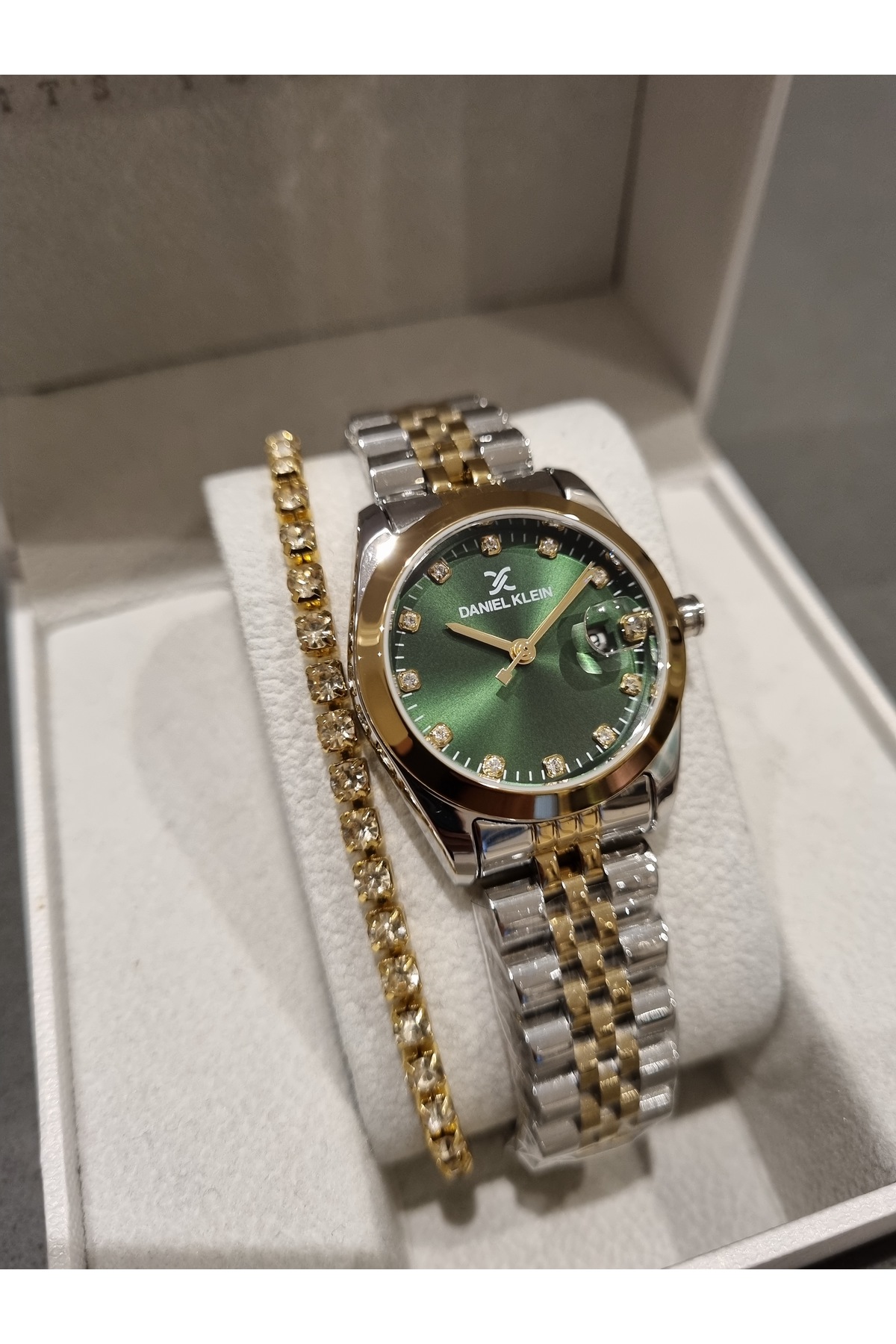 ساعت مچی دستبند با تقویم فولادی سبز زنانه طلا/فلز با کیفیت عالی و رنگ زیبا و طرح شیک و قیمت باورنکردنی ساخت برند Daniel Klein را از فروشگاه اینترنتی فیزا خریداری کنید.