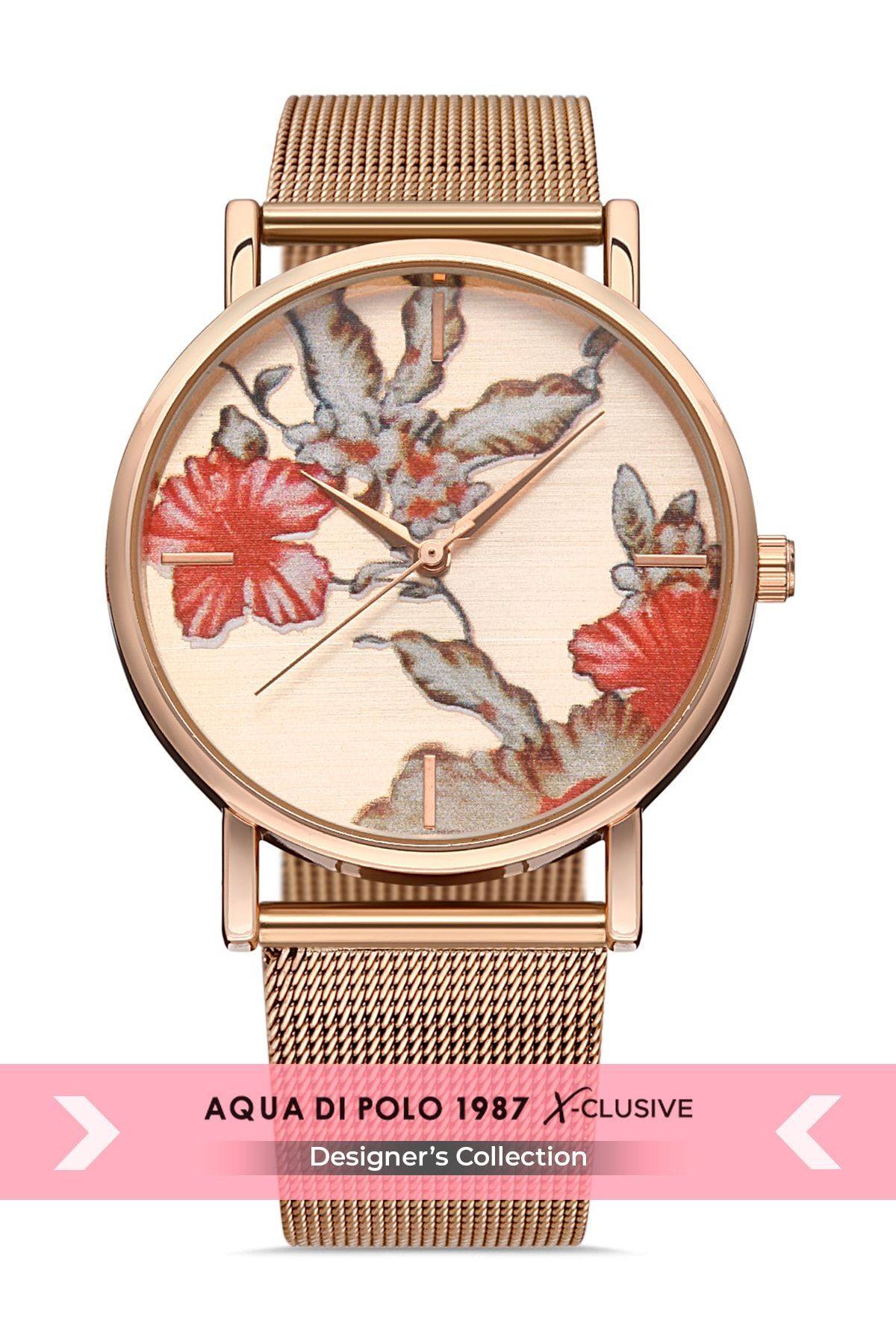 ساعت مچی فلزی حصیری گلدار طلایی رز گلد زنانه با کیفیت عالی و رنگ زیبا و طرح شیک و قیمت باورنکردنی ساخت برند Aqua Di Polo 1987 را از فروشگاه اینترنتی فیزا خریداری کنید.