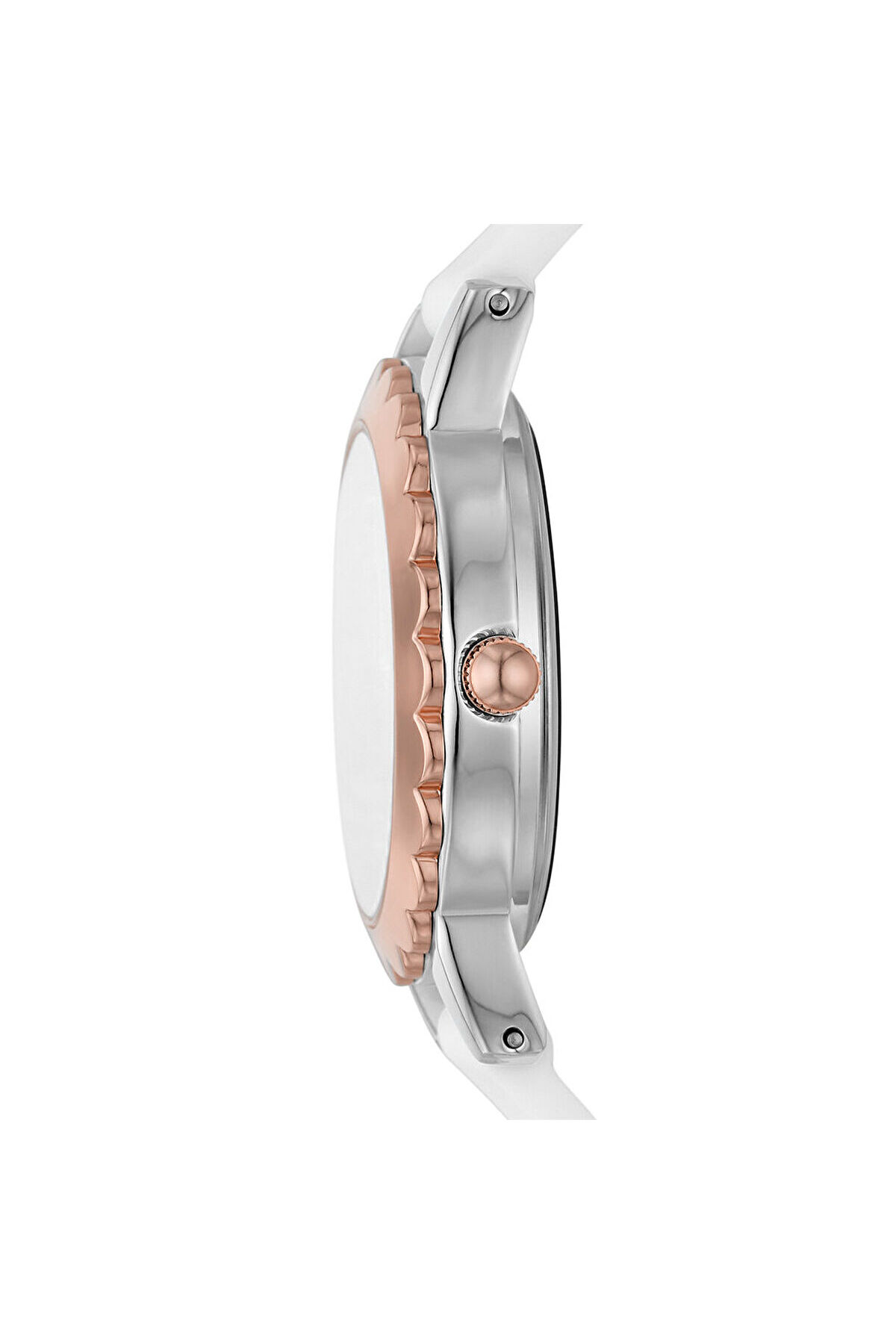 بند این ساعت نیز با دقت و ظرافت طراحی شده است، به گونهای که نه تنها به راحتی بر روی مچ دست قرار میگیرد، بلکه از لحاظ زیبایی نیز جذابیت خاصی به ساعت میبخشد. از آنجایی که بند ساعت از متریال نرم و مقاوم ساخته شده، از خستگی و ایجاد حساسیت برای پوست جلوگیری میکند. این ویژگی به شما این امکان را میدهد که ساعت را در طول روز بدون هیچ گونه ناراحتی بپوشید.