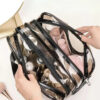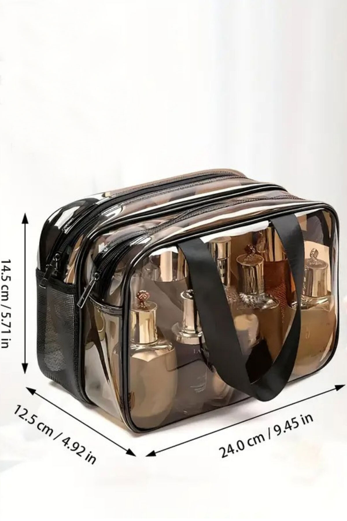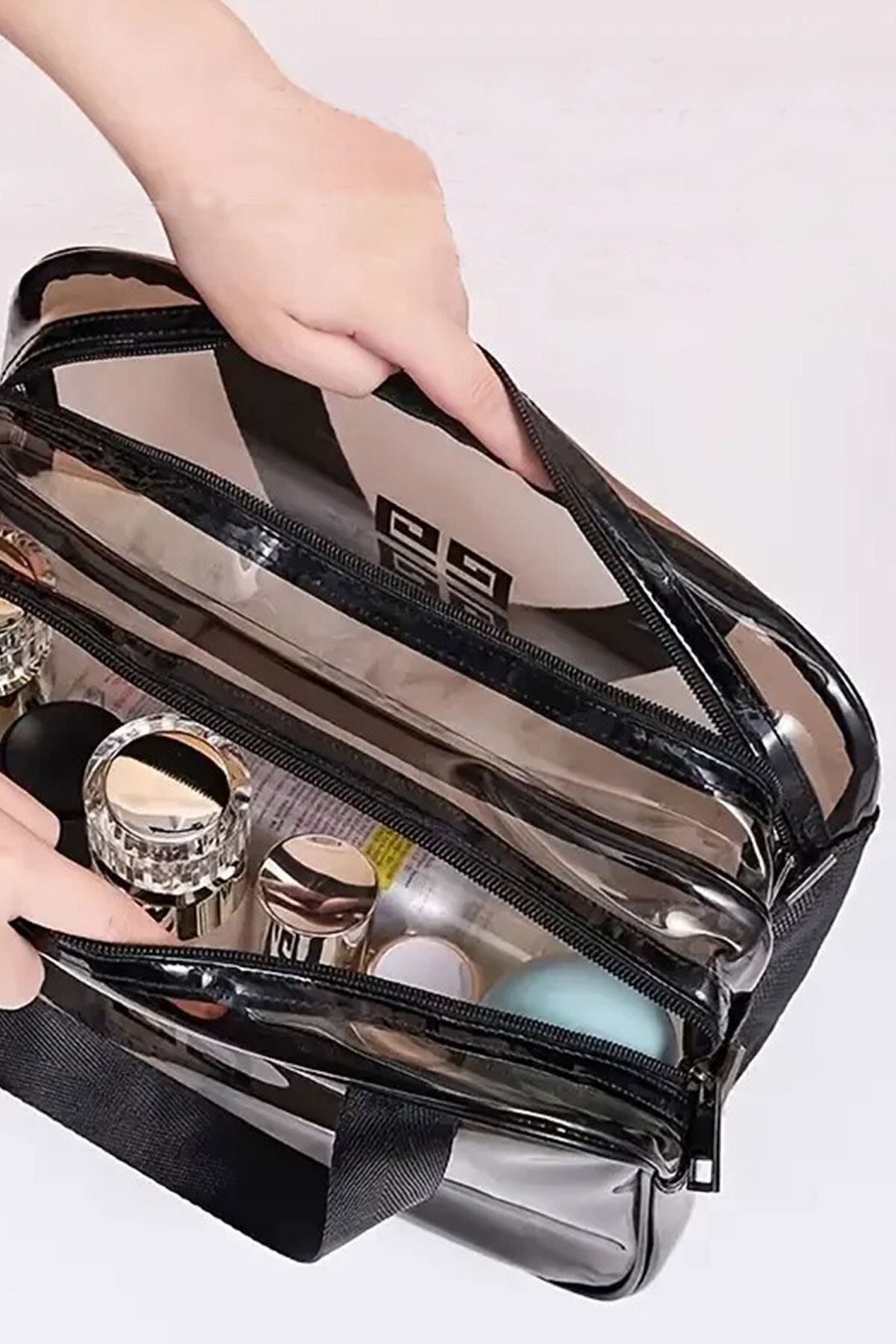 کیف آرایشی بزرگ زنانه با دو بخش شفاف و مشبک به گونهای طراحی شده که از مواد باکیفیت و بادوام ساخته شده است. این موضوع باعث میشود که این کیف بتواند در شرایط مختلف، از جمله آب و هوای مرطوب ساحل، کاملاً مقاوم باشد. شما میتوانید با خیال راحت این کیف را در سفرها و کنار دریا با خود ببرید بدون اینکه نگران آسیب دیدن لوازم خود باشید.