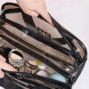 کیف آرایشی بزرگ زنانه با دو بخش شفاف و مشبک یک انتخاب ایدهآل برای خانمهایی است که به زیبایی و نظم در لوازم آرایشی خود اهمیت میدهند. این کیف با طراحی هوشمندانهاش، به شما این امکان را میدهد که لوازم آرایشی و بهداشتی خود را در دو بخش تفکیک شده و به راحتی سازماندهی کنید. بخش شفاف به شما کمک میکند تا به سرعت به محتویات داخلی کیف دسترسی پیدا کنید و نیازی به جستجوی طولانی نباشد.