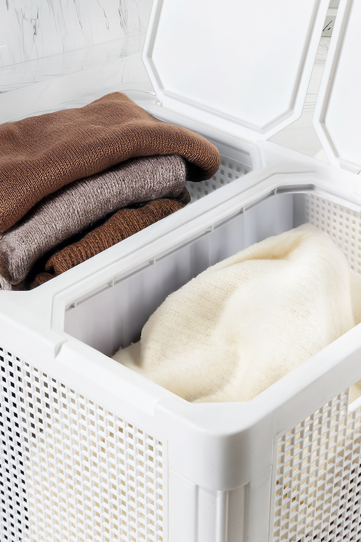 سبد لباس دو بخشی SmartDuo با ظرفیت 84 لیتر، یک گزینه ایدهآل برای سازماندهی و نگهداری لباسها در فضای خانه یا محل کار شماست. این سبد با طراحی مدرن و هوشمند خود، به شما این امکان را میدهد تا لباسها را به دو بخش مجزا تقسیم کنید، که این کار باعث میشود فرآیند شستشو و نگهداری لباسها به مراتب آسانتر و منظمتر شود. با ظرفیت 84 لیتر، این سبد مناسب خانوادهها و افرادی است که به تعداد زیادی لباس نیاز دارند.