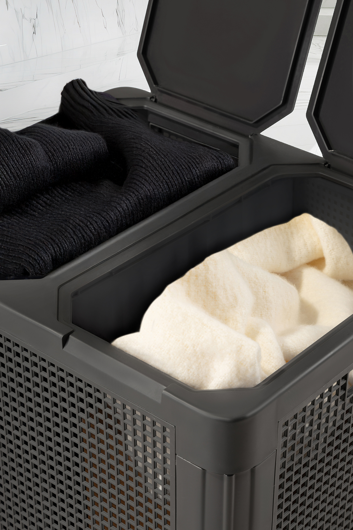 علاوه بر کارایی، سبد لباس SmartDuo از طراحی زیبایی برخوردار است که به راحتی میتواند با دکوراسیون داخلی شما هماهنگ شود. رنگهای متنوع این سبد به شما این امکان را میدهد که انتخابهای متناسب با سلیقه خود را داشته باشید و آن را در هر قسمتی از خانه، از جمله اتاق خواب، حمام یا حتی اتاق نشیمن قرار دهید.