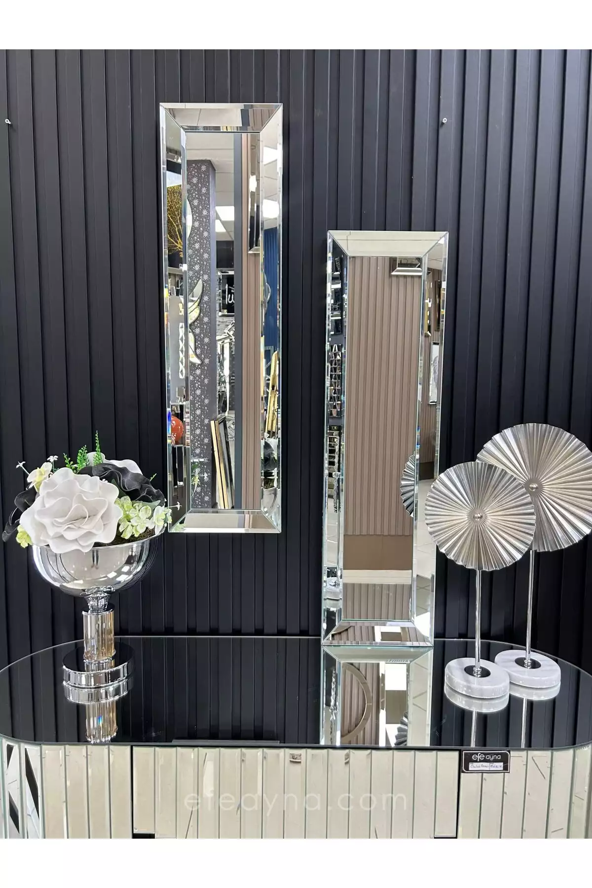ست آینه جانبی نقرهای از برند Efe Ayna، محصولی زیبا و با کیفیت برای دکوراسیون داخلی شماست. این ست شامل دو عدد آینه با اندازههای ۲۵ در ۹۰ سانتیمتر میباشد.