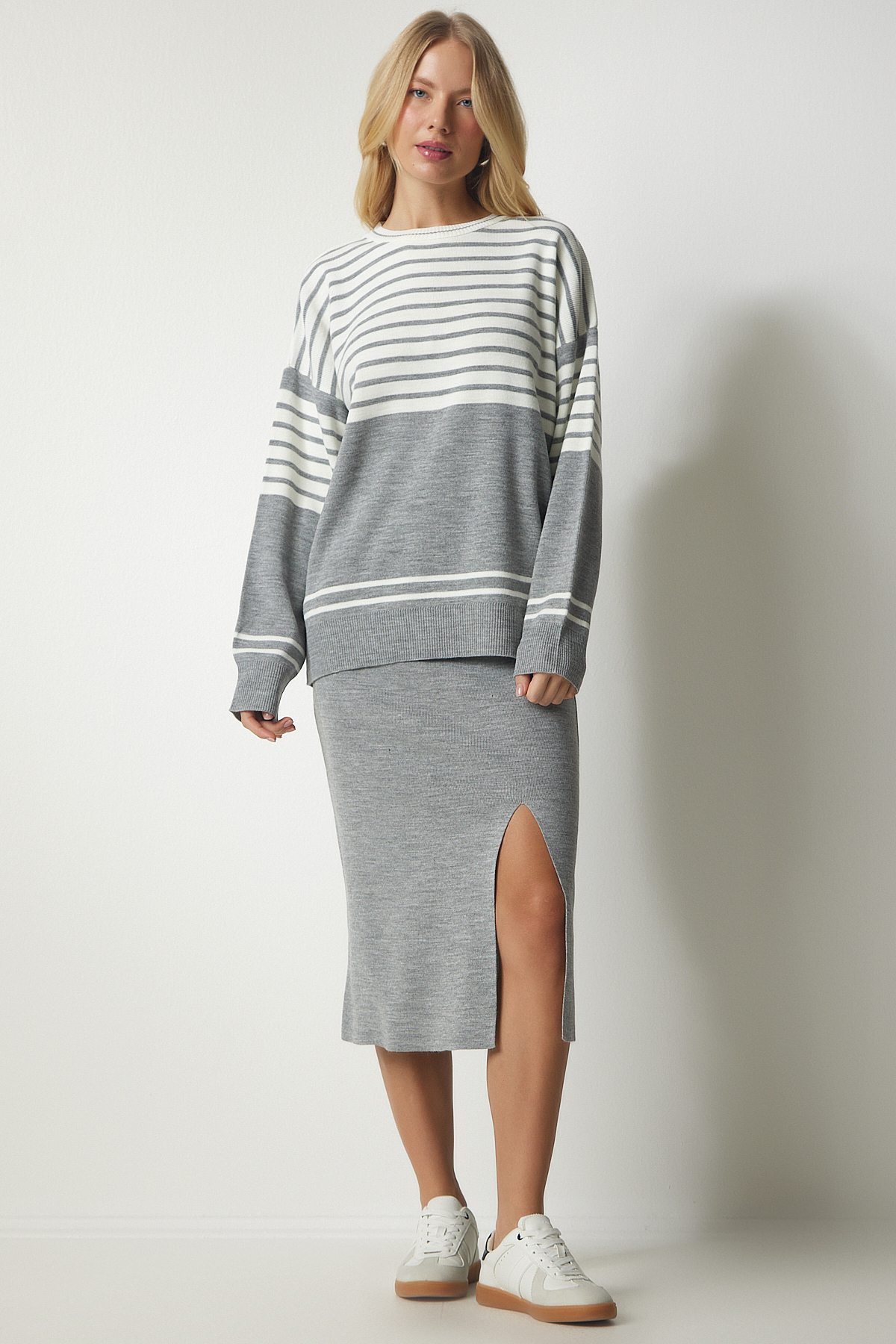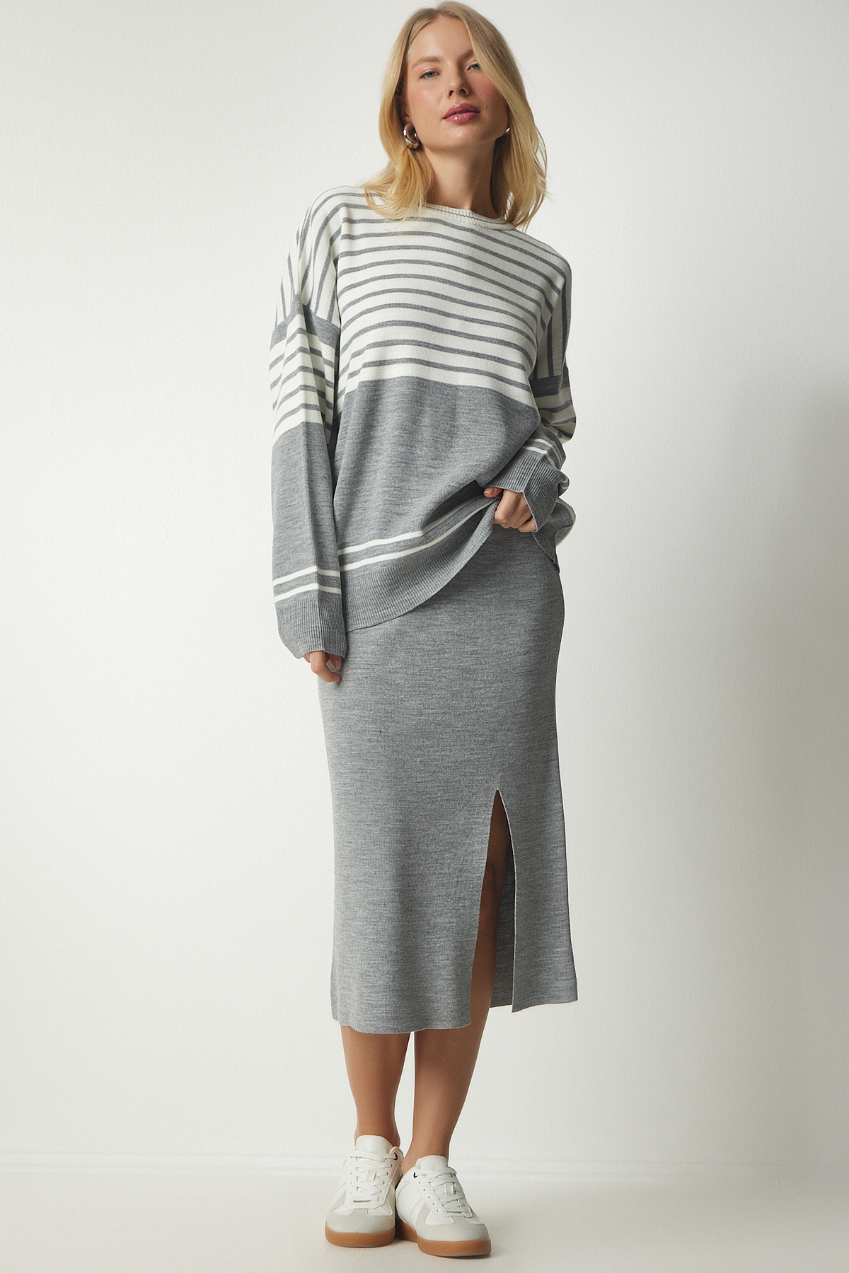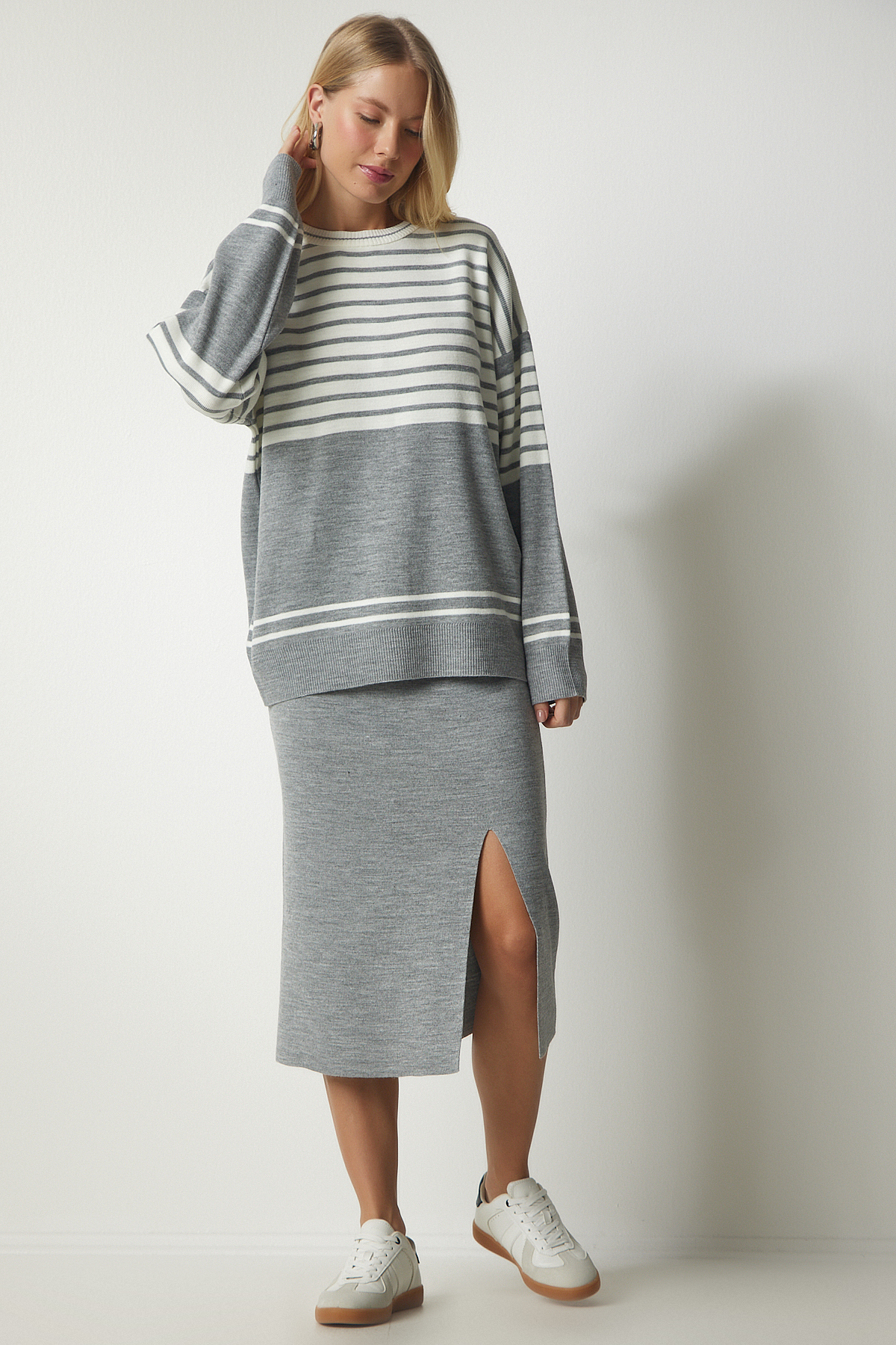 ست بافتنی دامن پلیور راهراه طوسی زنانه با کیفیت عالی و رنگ زیبا و طرح شیک و قیمت باورنکردنی ساخت برند Happiness İstanbul را از فروشگاه اینترنتی فیزا خریداری کنید.