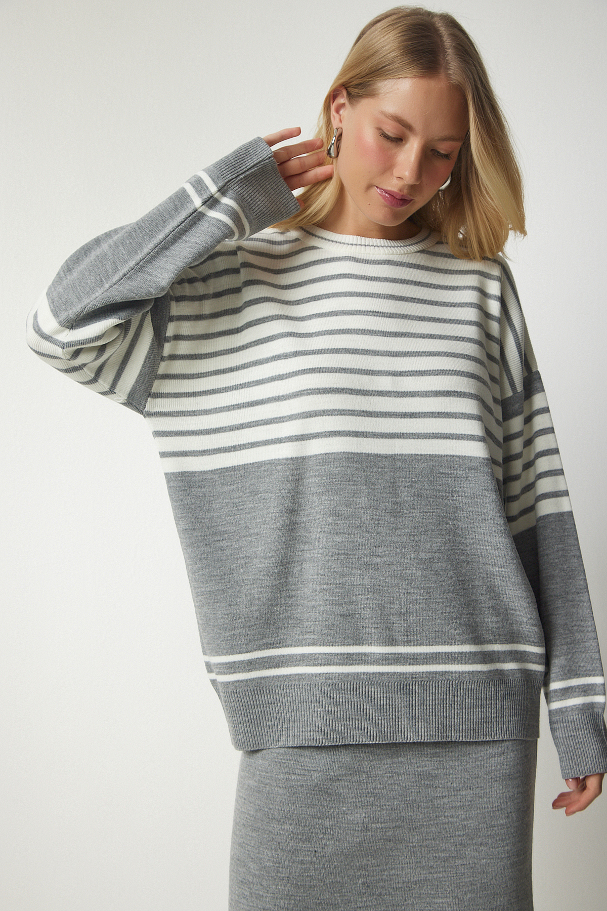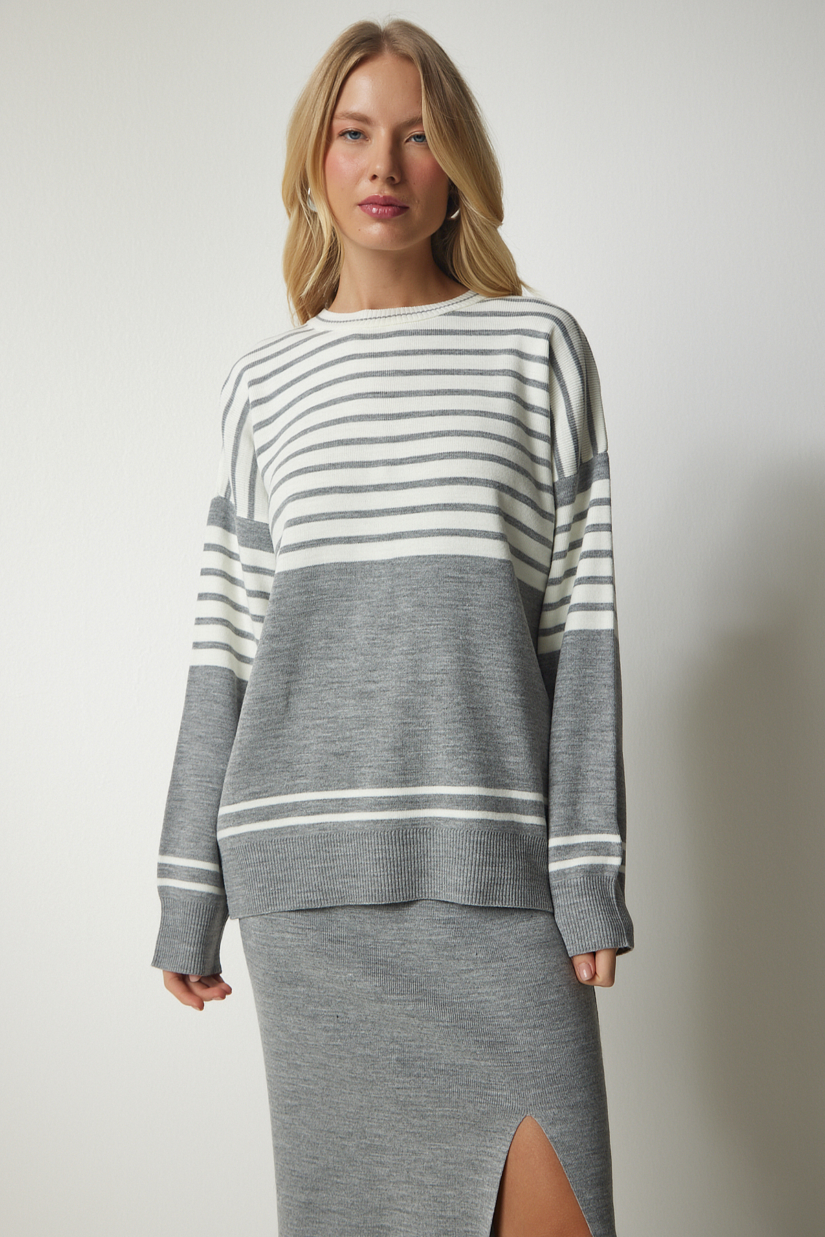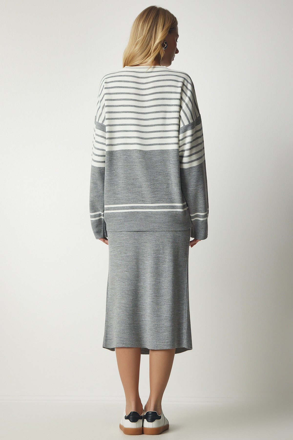 ست بافتنی دامن پلیور راهراه طوسی زنانه با کیفیت عالی و رنگ زیبا و طرح شیک و قیمت باورنکردنی ساخت برند Happiness İstanbul را از فروشگاه اینترنتی فیزا خریداری کنید.