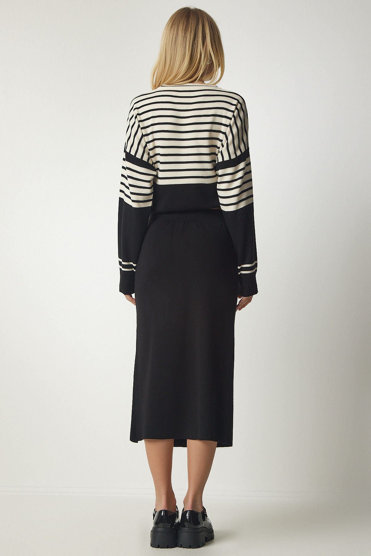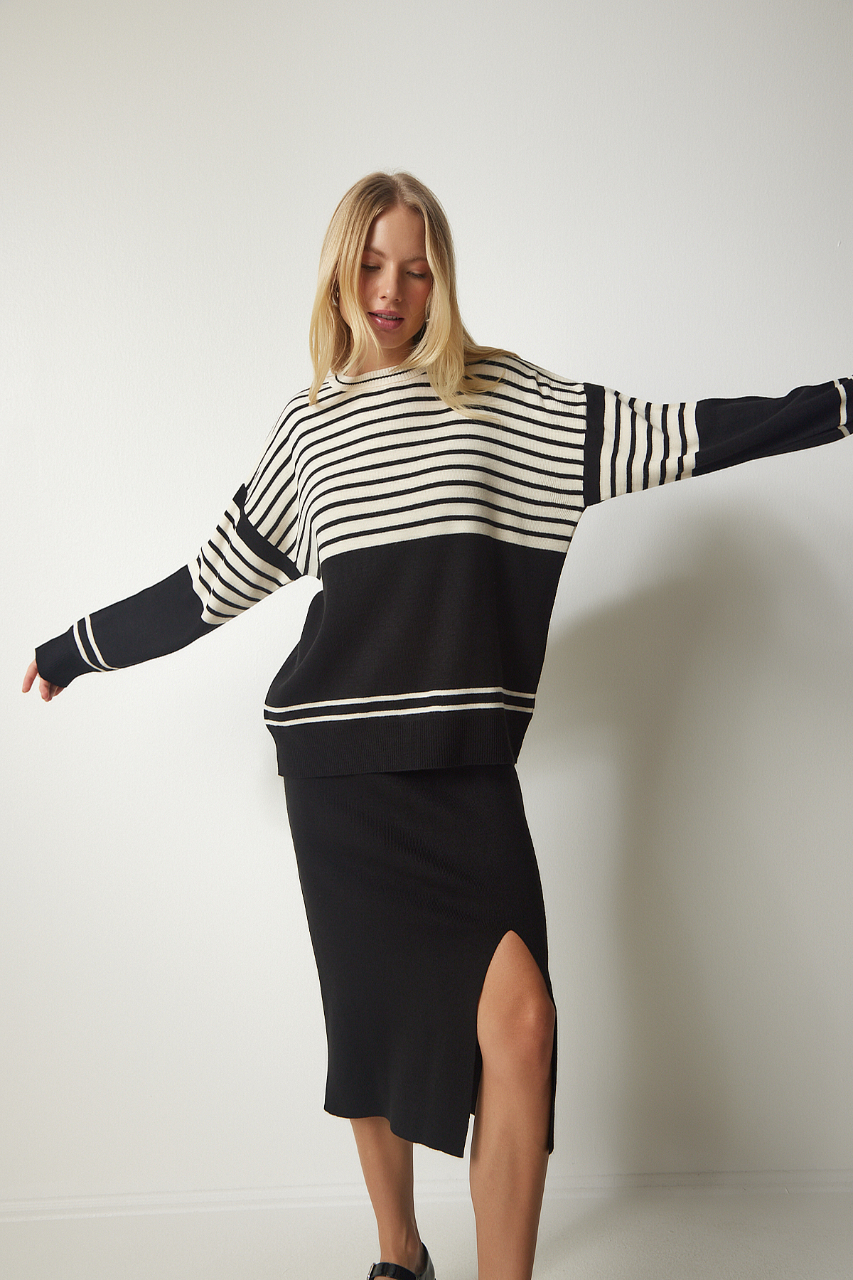 ست بافتنی دامن پلیور راهراه مشکی زنانه با کیفیت عالی و رنگ زیبا و طرح شیک و قیمت باورنکردنی ساخت برند Happiness İstanbul را از فروشگاه اینترنتی فیزا خریداری کنید.