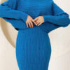 ست بافتنی پلیور پیراهن کشی کوتاه آستین خفاشی بلند بدون یقه گرد کلفت دوتایی بند‎دار برند ALCHON کد 1725609832