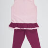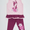 لگینگ این ست نیز با دقت و بافتی لطیف طراحی شده است که امکان حرکت آزادانه را فراهم میآورد. این مدل لگینگ به خوبی با تاپ هماهنگ میشود و طراحی آن به گونهای است که میتوان آن را با انواع تیشرت و بلوزهای دیگر نیز ست کرد. قابلیت کشسانی بالا نیز موجب میشود که دختران به راحتی در هر فعالیتی از جمله ورزش یا تفریح از آن استفاده کنند.