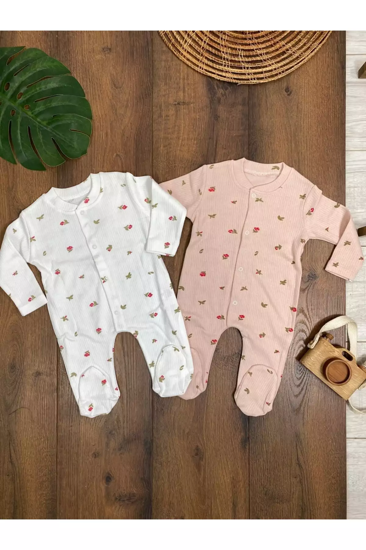 ست تودلی ۲ تکه دخترانه با طرح گل ارگانیک، مناسب برای نوزادان ۱-۳-۶ ماهه، از جنس پنبه برند Genel Markalar