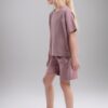 این ست دارای آستین کوتاه و شورت راحتی است که برای فعالیتهای روزانه و بیرون رفتن ایدهآل است.