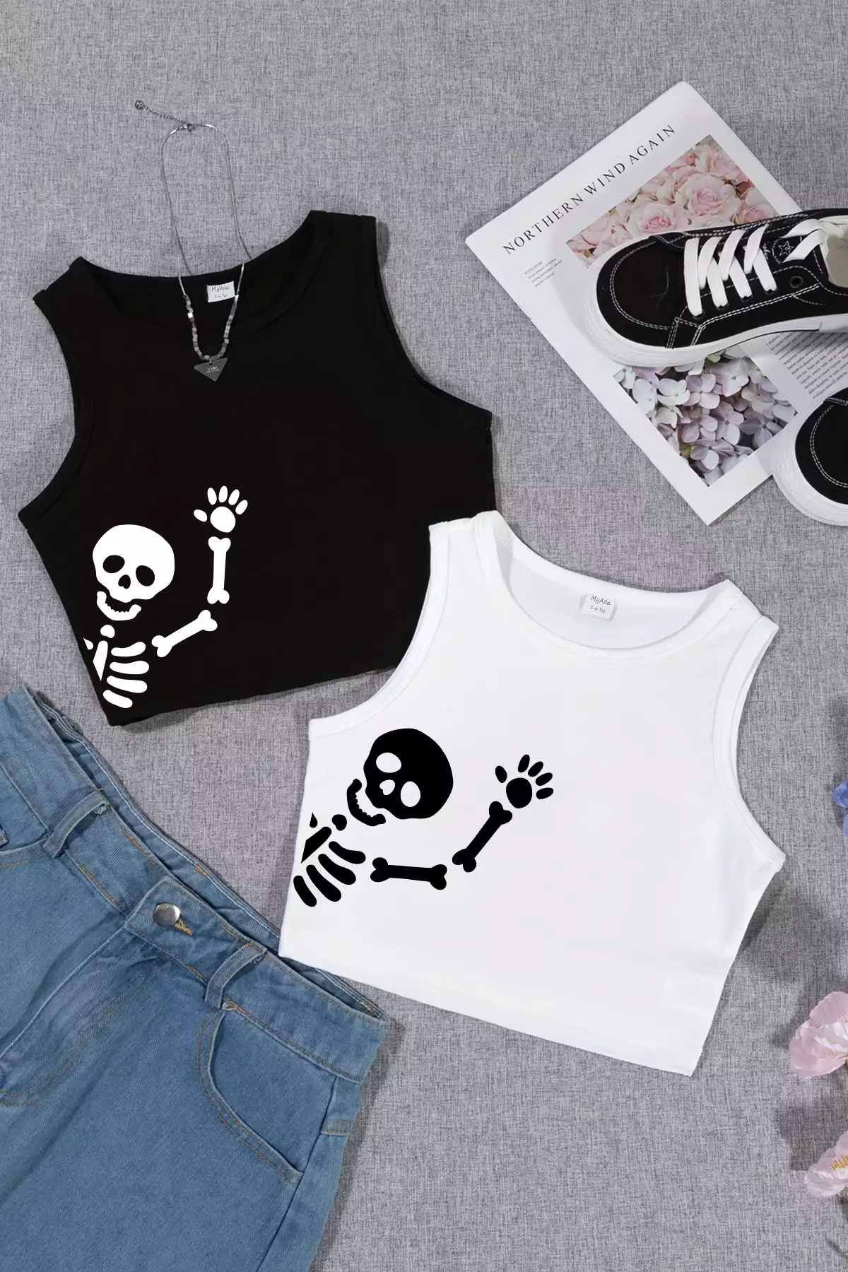 ست تیشرت کروپ دو عددی مدل 23466-1 از برند TARZ STİL، یک انتخاب بینظیر برای دختران جوان است. طراحی خاص و جذاب این تیشرتها با طرح اسکلت، حس منحصر به فردی به استایل شما میبخشد.