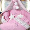 ست خواب نوزاد 70×130 با نام، توری لوکس و تجهیزات، طرح گلدار یکی از بهترین انتخابها برای فراهم کردن خواب راحت و آرام برای نوزادان شماست. این ست خواب با طراحی خاص و توجه به جزئیات، به راحتی توانسته است فضایی دلنشین و زیبا برای اتاق خواب نوزادان فراهم آورد. ابعاد استاندارد 70×130 سانتیمتر این محصول، آن را برای استفاده در قابهای تخت نوزاد ایدهال میکند و به راحتی قابل نصب و استفاده است.