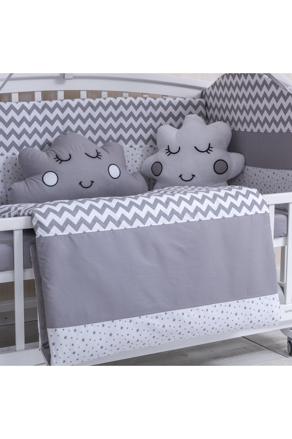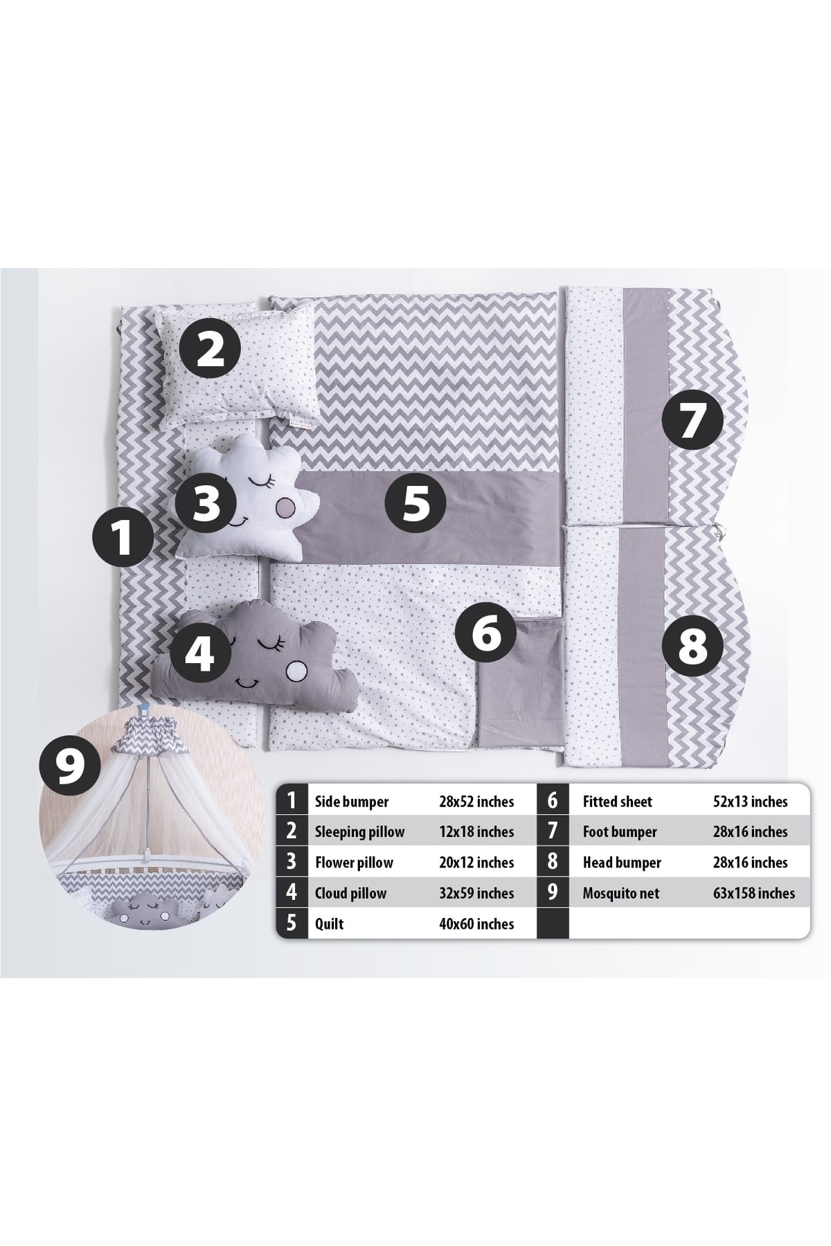 ست خواب گهواره کودک 11تکه شکل‎دار طوسی برند Mini Baby کد 1720799836