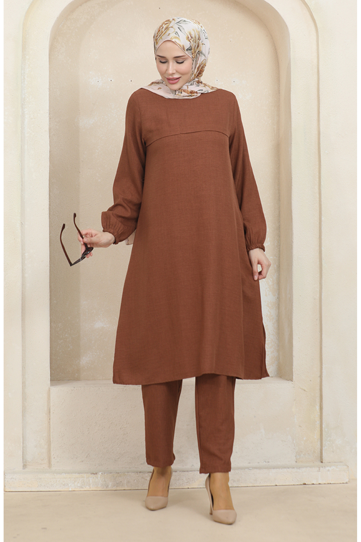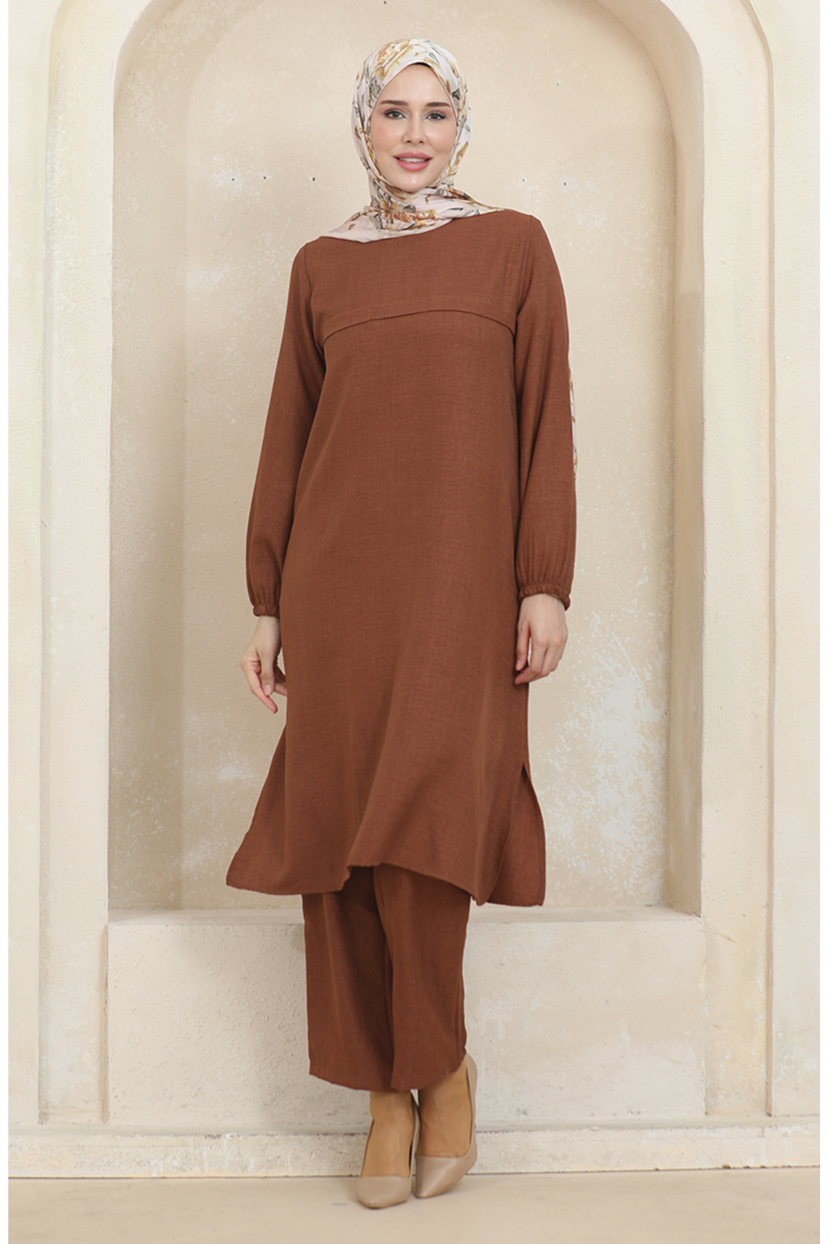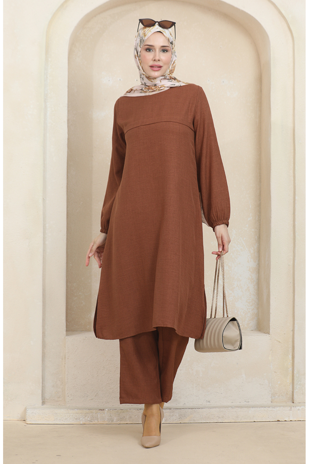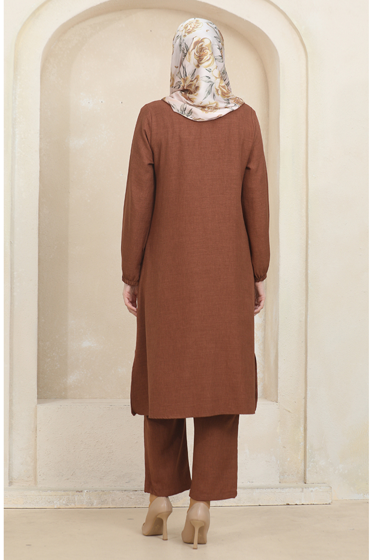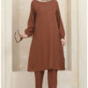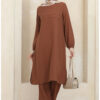ست شلوار و تونیک با آستین کشی – قهوه ای شماره 1005-05 کد 1743435429، یک انتخاب ایدهآل برای آن دسته از افرادی است که به دنبال راحتی و زیبایی در لباسهای خود هستند. طراحی این ست به گونهایست که به بهترین شکل ممکن، هارمونی بین شلوار و تونیک را به نمایش میگذارد. رنگ قهوهای ملایم و زیبا، به سادگی با دیگر رنگها ترکیب میشود و میتواند به راحتی در موقعیتهای مختلف مورد استفاده قرار گیرد.