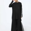 تیشرت این ست با طراحی مینیمالیستی و جزئیات دقیقی که در دوخت آن به کار رفته، به خوبی بدن را در بر میگیرد و آزادی حرکت را فراهم میکند. بافت نرم و لطیف پارچه از ویژگیهایی است که این تیشرت را به سریعترین گزینه برای پوشیدن تبدیل میکند. همچنین، رنگ مشکی آن باعث میشود که شما بتوانید به راحتی آن را با دیگر لباسها و اکسسوریهای خود ترکیب کنید.
