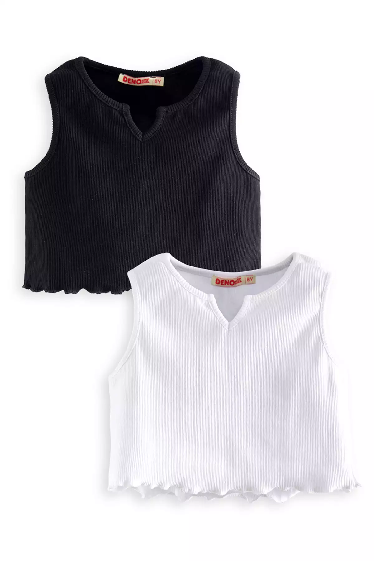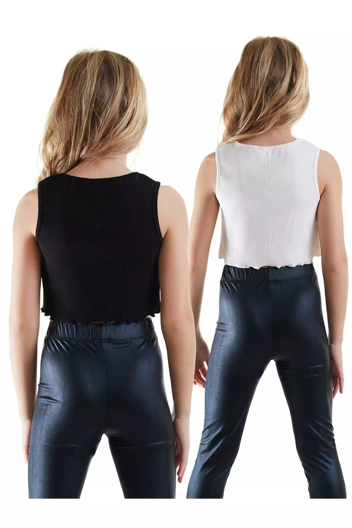 این ست دو عددی تاپ کوتاه شامل یک عدد تاپ مشکی و یک عدد تاپ سفید است که مناسب برای دختران کودک طراحی شده است.