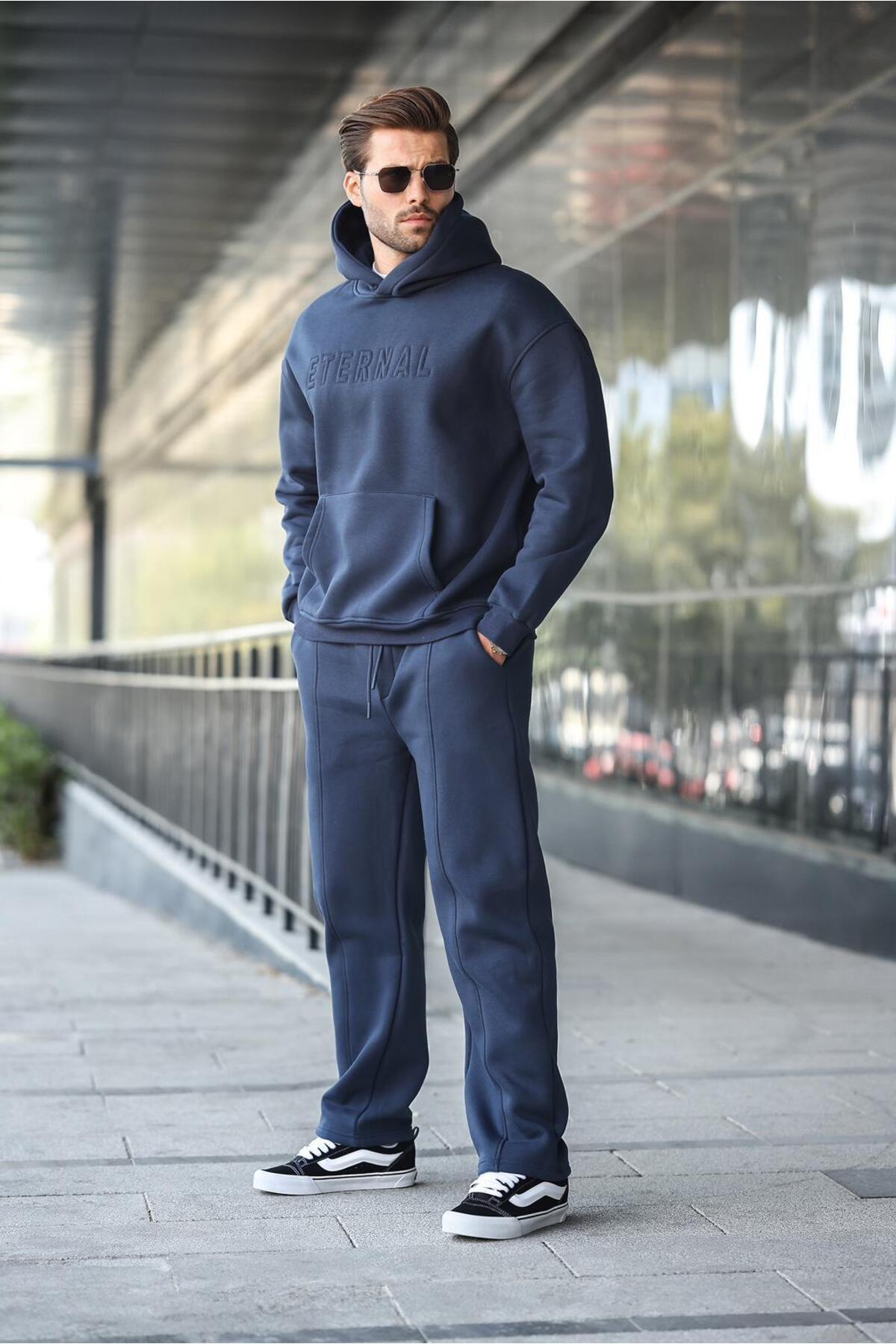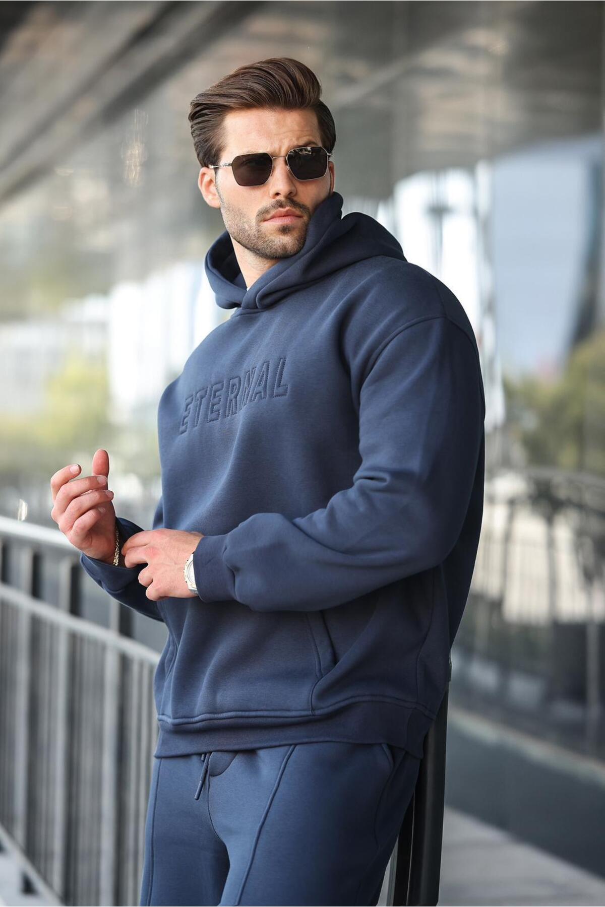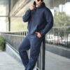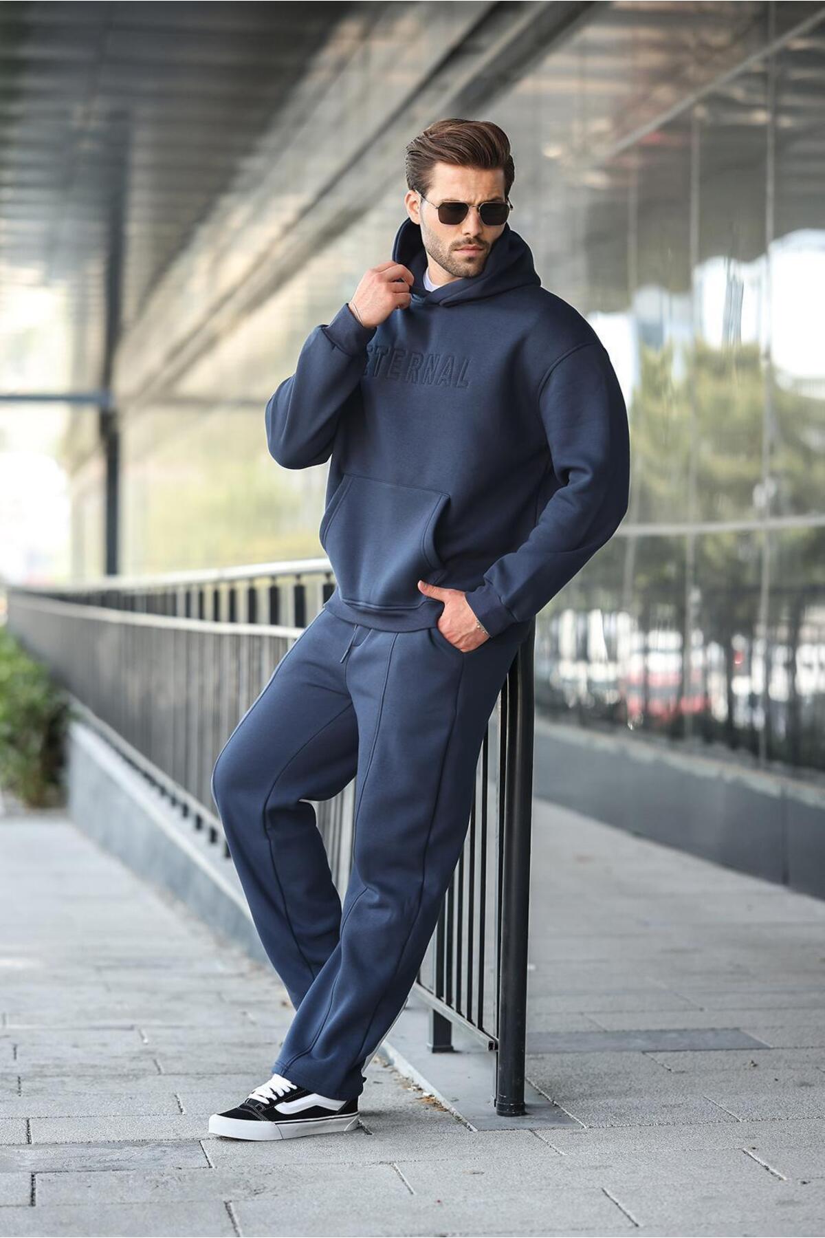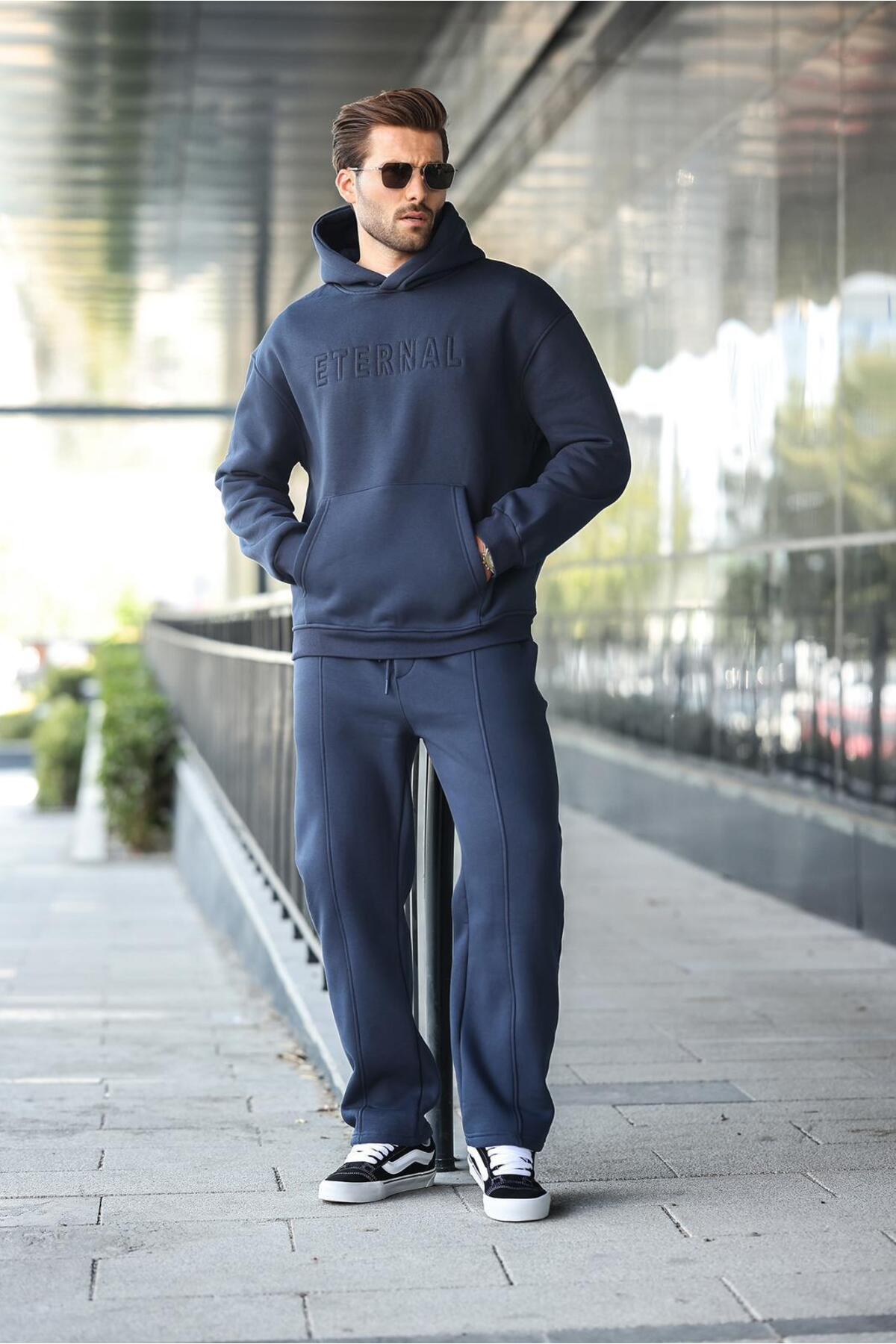 ست سویشرت و شلوار مردانه کلاهدار آبی تیره E7324 برند Madmext
