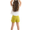 شورت این ست نیز با طراحی تطبیقپذیر و راحت، به خوبی با تیشرت هماهنگ است. این شورت، آزادی حرکت را برای دختران فراهم میآورد و باعث میشود که در هر فعالیتی، از بازی و سرگرمی گرفته تا پیادهروی در پارک، احساس راحتی کنند. جیبهای جانبی نیز به عملیاتی بودن این شورت افزوده و امکان حمل وسایل کوچک مانند کلید و دستمال کاغذی را فراهم میکنند.