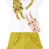 این ست دخترانه به راحتی با انواع کفشهای تابستانی، از جمله صندلها و کتانیها هماهنگ میشود و گزینه مناسبی برای استفاده در مهمانیها، گردهماییها و سفرهای تابستانی است. با انتخاب این ست، میتوانید یک استایل مدرن و شاداب برای دختر خود ایجاد کنید که هم نشاندهنده شخصیت اوست و هم احساس خوشحالی و راحتی را به ارمغان میآورد.