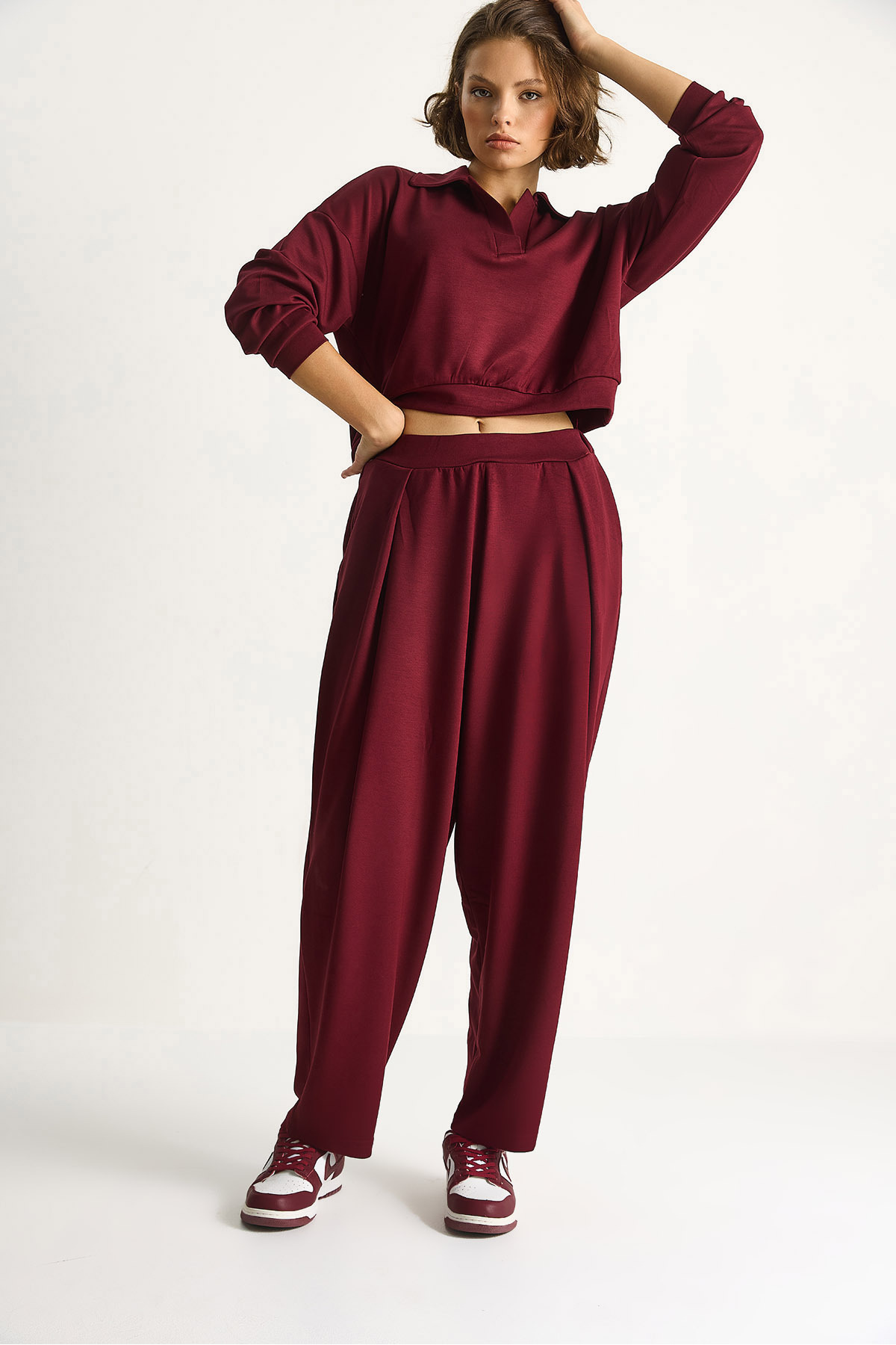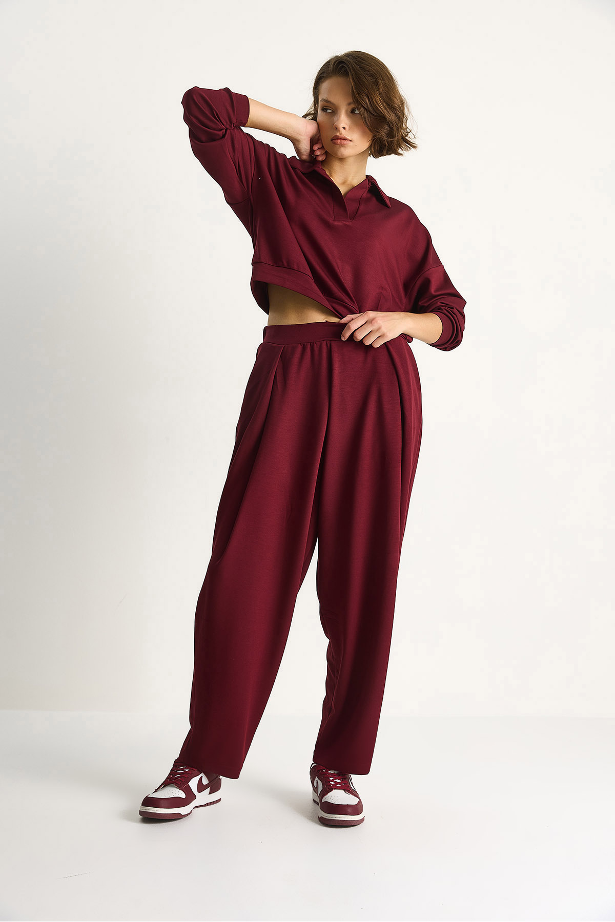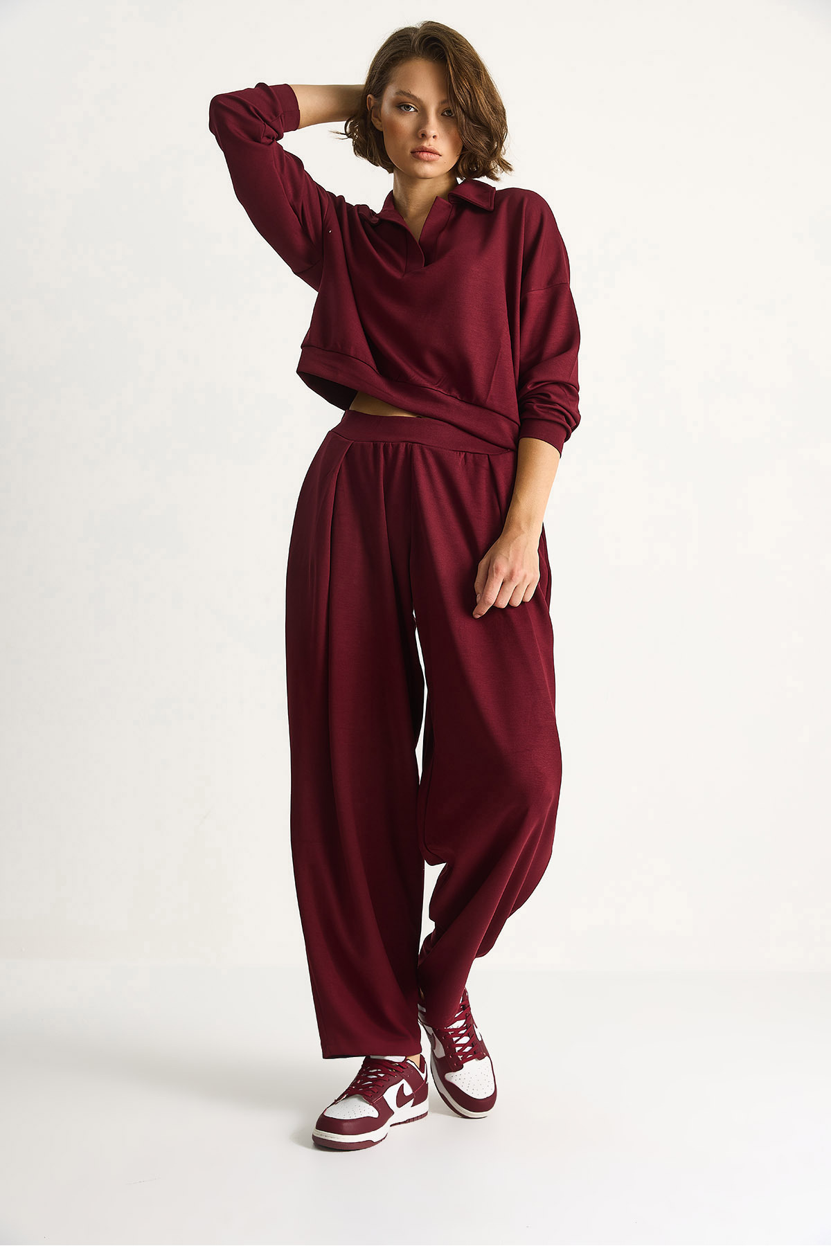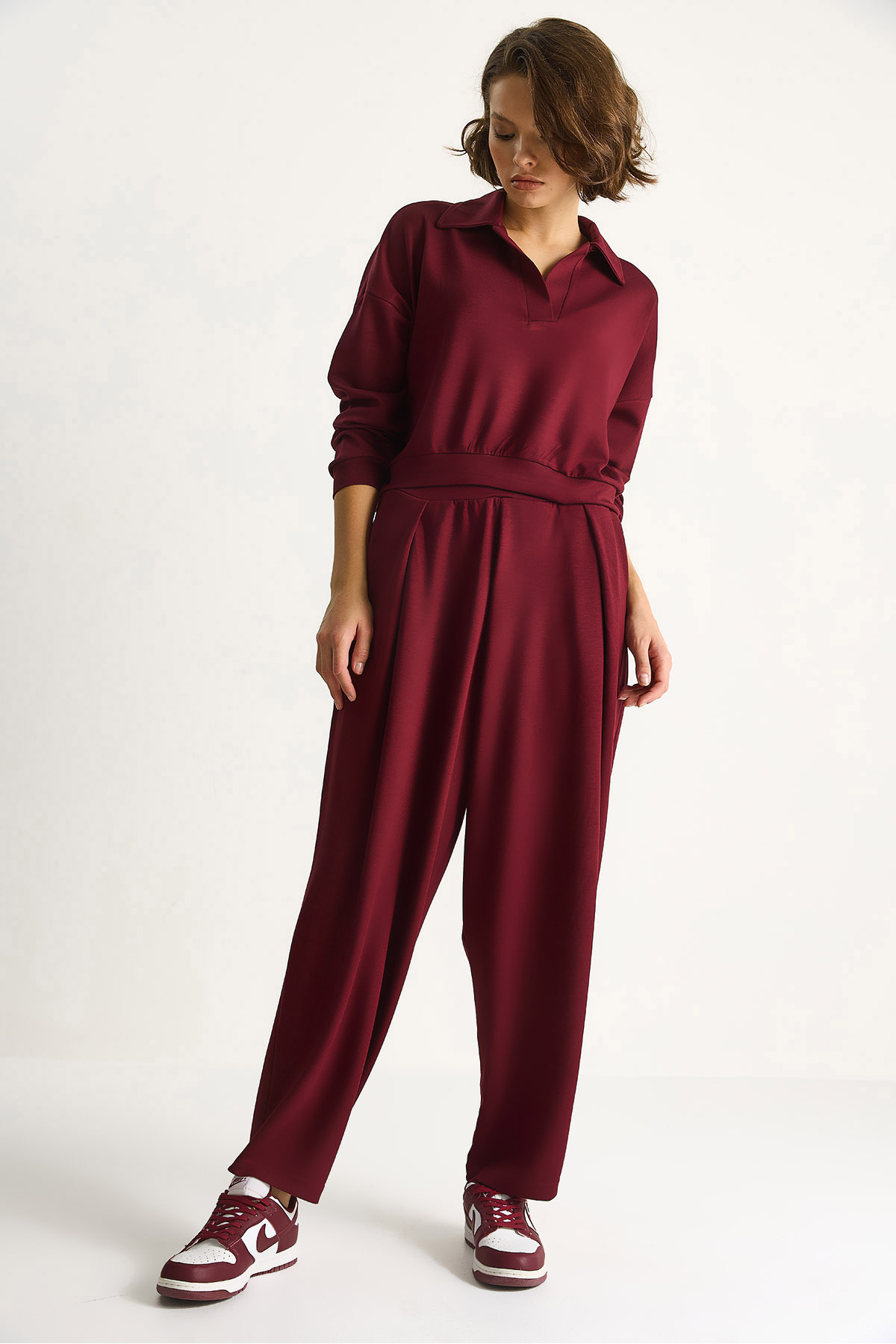 ست شلوار و تایپ با یقه پلیسه کوتاه از ویسکوز با بافت نرم مخصوص بانوان 6818 60283530 برند Bianco Lucci – 988308242