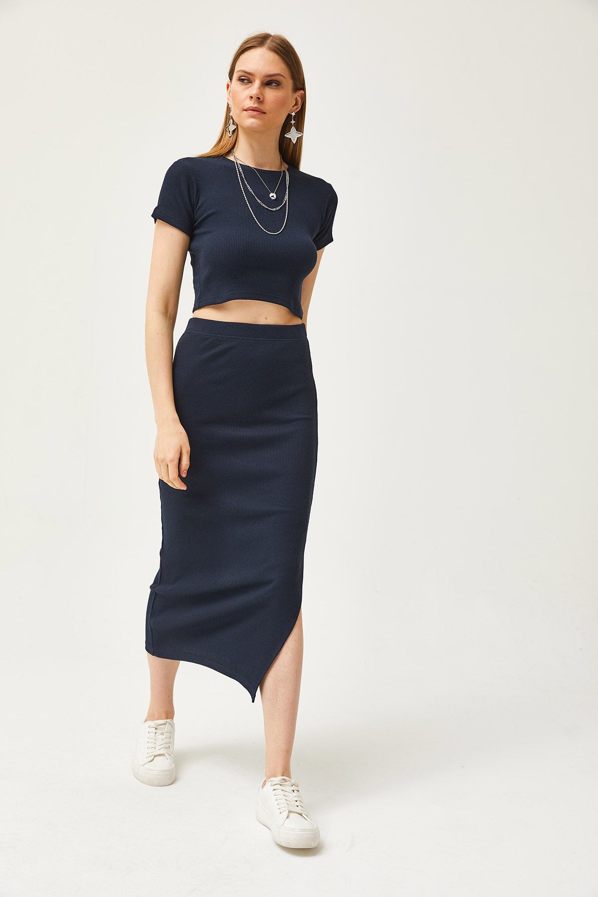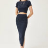 ست زنانه کوتاه آبی با دامن چاکدار و کشی TKM-19000194، یک گزینه منحصربهفرد و شیک برای هر خانمی است که به دنبال جذابیت و راحتی در عین حال است. این ست با طراحی مدرن و جوانپسند خود، به راحتی میتواند در هر مناسبتی به کار رود؛ از مهمانیها و دورهمیها گرفته تا روزهای معمولی. رنگ آبی آرامشبخش و پرطرفدار این ست، آن را به یک انتخاب مناسب برای فصول مختلف سال تبدیل کرده است.