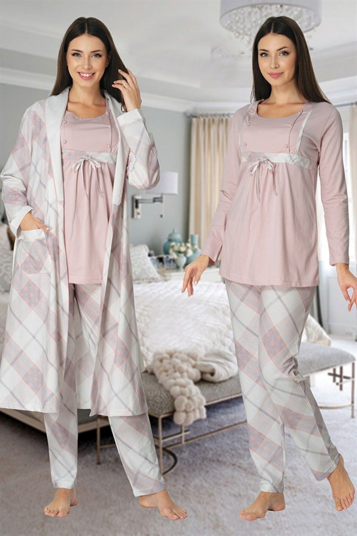پیراهن و پجامه این ست بهطور ویژه برای بارداری طراحی شده است و با در نظر گرفتن نیازها و تغییرات بدن مادران باردار، به راحتی قابل استفاده خواهد بود. طراحی خاص این لباس باعث میشود تا به خوبی با تغییرات سایز بدن هماهنگ شود و در عین حال احساس راحتی را در تمام طول روز به شما القا کند. رنگها و الگوهای مختلف موجود در این ست میتوانند به سلیقههای گوناگون پاسخ دهند.