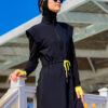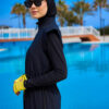 مایوی پوشیده و تمام مشکی مدل M2501-1، یک انتخاب ایدهآل برای بانوانی است که به دنبال راحتی و زیبایی در کنار حفظ حریم شخصی خود هستند. این مدل دارای طراحی چهار تکه است که شامل یک بیکینی ساده، شلوارک، بلوز و یک پوشش رویی میباشد. این طراحی چند تکه امکان انتخاب بیشتر در ترکیب پوششها را به شما میدهد و میتوانید به راحتی آنها را با یکدیگر ترکیب کنید.