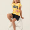 شورت این ست نیز از پارچهای با کیفیت عالی تهیه شده و دارای برش مناسب و راحتی فوقالعادهای است. طراحی شورت به گونهای است که آزادی حرکت را برای دختران فراهم میکند و به طور همزمان، ظاهری شیک و جذاب به آنها میبخشد. این شورت با دورکشی مناسب و راحت، بهترین گزینه برای روزهای گرم تابستانی و فعالیتهای بیرونی میباشد.